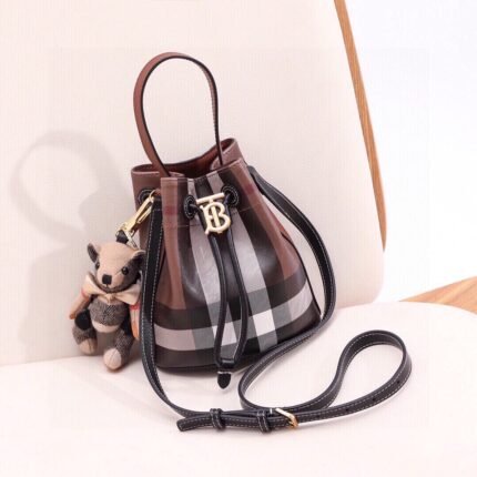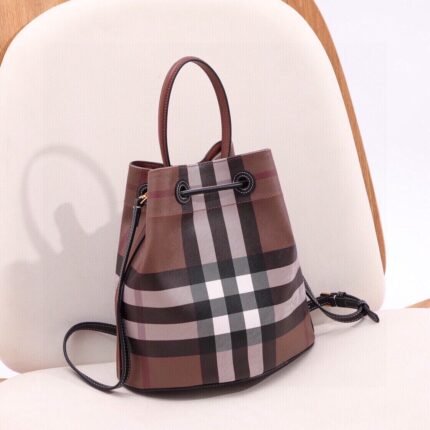 B family 🆕 Large bucket bag Hand carry crossbody can be. Brown color with classic check pattern Full of strong retro flavor Not only fashionable sense is very strong Matching sense is also very advanced. (16x26x26) 948160