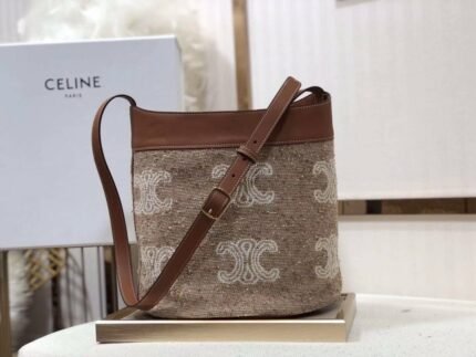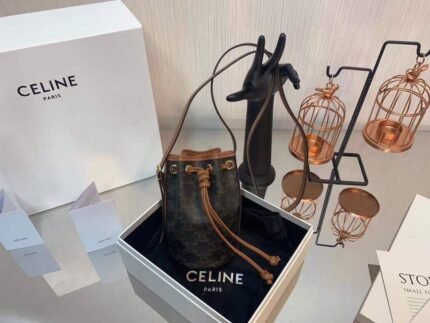 CELINE Triomphe canvasn Old Flower nano noe Drawstring Bucket Bag n 🆕New Size: 17x9x9cmn Model: 191142SnP480