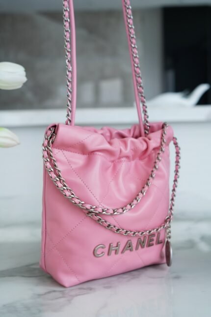 𝗖𝗛𝗔𝗡𝗘𝗟 ✦ 23s spring and summer new 22Mini bag Pink and silver buckle 🤍🤍nn million kinds of expectations of the mini 22bag come! La, a scaled-down version of the 22bag, looks extraordinarily playful and cute, still calfskin material, soft and lightweight, small body large capacity, out of the street proper bomb! nnSize: 19×20×6cmn 🔍: 23200821