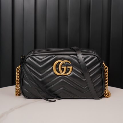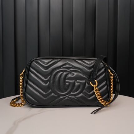 𝐆𝐆𝐌𝐚𝐫𝐦𝐨𝐧𝐭 Series Camera Bag Black n rather Structured soft shape with top zipper closure with double G metal hardware. Leather shoulder pads with chain shoulder strap detailing for greatly increased wearing comfort. Wave pattern quilted leather with double 𝐆 logo on the back, the overall shape of the soft but not too strong nn camera bag series since its launch, has an intriguing fashion tone, have to avant-garde retro posture to present the simple temperament of the generous 〰〰n Dimensions: 24 * 13 * 7cm 🔍:4476320801
