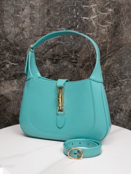 𝐉𝐚𝐜𝐤𝐢𝐞 1961 All Leather Collection Light Blue 𝐌𝐈𝐍 𝐈nnThe classic Jackie 1961 handbag has been reinterpreted for the Fall/Winter 2020 collection in a sophisticated and compact miniature design. nThis season, the recognizable handbag returns to the forefront of fashion, crafted in light blue leather with an additional detachable shoulder strap. The second shoulder strap can be attached to the bag via a buckle, injecting a modern and stylish twist to the iconic design and creating a variety of options for carrying by hand, over the shoulder or across the body. nSize: 19*13*3cmn🔍: 6370920811