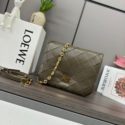 LO℮w℮🌟 Repeat Pleated Shiny Napa Sheep Leather Puffer Goya Handbag Inspired by the Goya aesthetic, the Puffer Goya Handbag brings a new sensory and tactile dimension through the shiny napa sheep leather with goose feather padding. Fitted with a detachable and adjustable metal donut chain and a detachable leather strap. This version is made from pleated sheep leather that has been cut, sewn and hand woven. Carry it on your shoulder or in your hand*Magnetic closure*This bag comes with a detachable chain and a leather strapOne main compartment, one zippered pocket and one slit pocket *Nappa sheepskin leather liningnModel No.: 062466nSize:23*9*17cmn