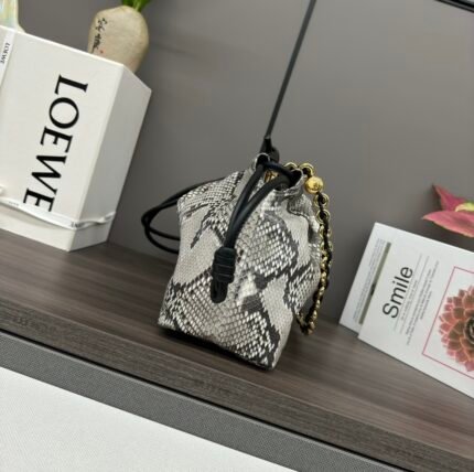 L⊚℮w℮🌟mini Soft Grain Cowhide Pebble Bucket The Pebble Bucket blends pure minimalist lines with attention-grabbing styling to create a unique and innovative handbag design. The signature Anagram-engraved hardware is both decorative and functional, the shoulder strap is adjustable for length and versatility, and the unique twisted construction is complemented by subtle details. This mini version is made of soft grained cowhide leather. Crossbody*Shoulder or handheld*Adjustable detachable shoulder strap*Magnetic closure*Interior pocket*Synthetic leather lining*Anagram engraved pebbles. nsize:16*16*19.5CMnModel No.:062342n