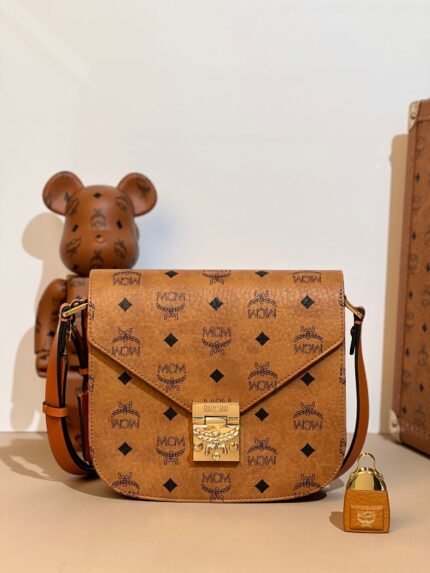 [Exclusive photos] MCM Pasetia Visetos Saddle Bag Cognac Shoulder Crossbody Women’s Bags with sizable capacity and enlarged phone. Size: 21*19*6.5cm