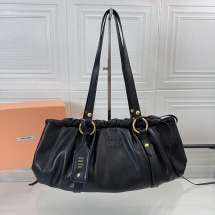 🍒M family 🍒 [full leather black] n𝐌𝐈𝐔𝐌𝐈 ☆ Retro armpit dumpling bag | biker bag n continuous high quality and stable output, the new product! Still classic retro, the highlight of the handbag is the mouth of the bag with a drawstring bunched mouth design, fine folds like lace like three-dimensional and playful, 🉑 shoulder 🉑 handheld, but also like the model as casually cupped at the waist, creating a lazy casual tone. The upper body is lazy and fashionable. The soft leather with the advanced color tone is really too beautiful! Whoever uses it looks good n Model No.: 5BH289n Size: base L44xH16xW10.5cm. 11800801