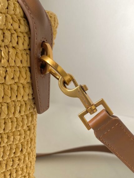 YSL LE37 straw bucket bag big goods real shot n this is too much Hawaiian flavor bla! Raffia grass and vegetable tanned leather splicing, really nice ~ Hawaiian style, the ultimate sense of relaxation! LOGO five gold hook buckle, with Raffia grass weaving, enough to decorate the summer, the French lazy wind full ~ both handheld and shoulder, on the body of super nice, minutes ins on line ~ summer vacation street travel essential single product! Adjustable removable shoulder straps, interpretation of a variety of back method, with removable zipper bag, capacity super can load! n7739910118 (20x25x16CM)