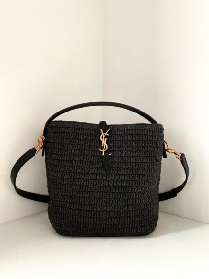YSL LE37 Straw Bucket Bag Black Large Goods real shot n this is too much of a Hawaiian flavor bla! Raffia grass and vegetable tanned leather splicing, really nice ~ Hawaiian style, the ultimate sense of relaxation! LOGO five gold hook buckle, with Raffia grass weaving, enough to decorate the summer, the French lazy wind full ~ both handheld and shoulder, on the body of super nice, minutes ins on line ~ summer vacation street travel essential single product! Adjustable removable shoulder straps, interpretation of a variety of back method, with removable zipper bag, capacity super can load! n7739910118 (20x25x16CM)