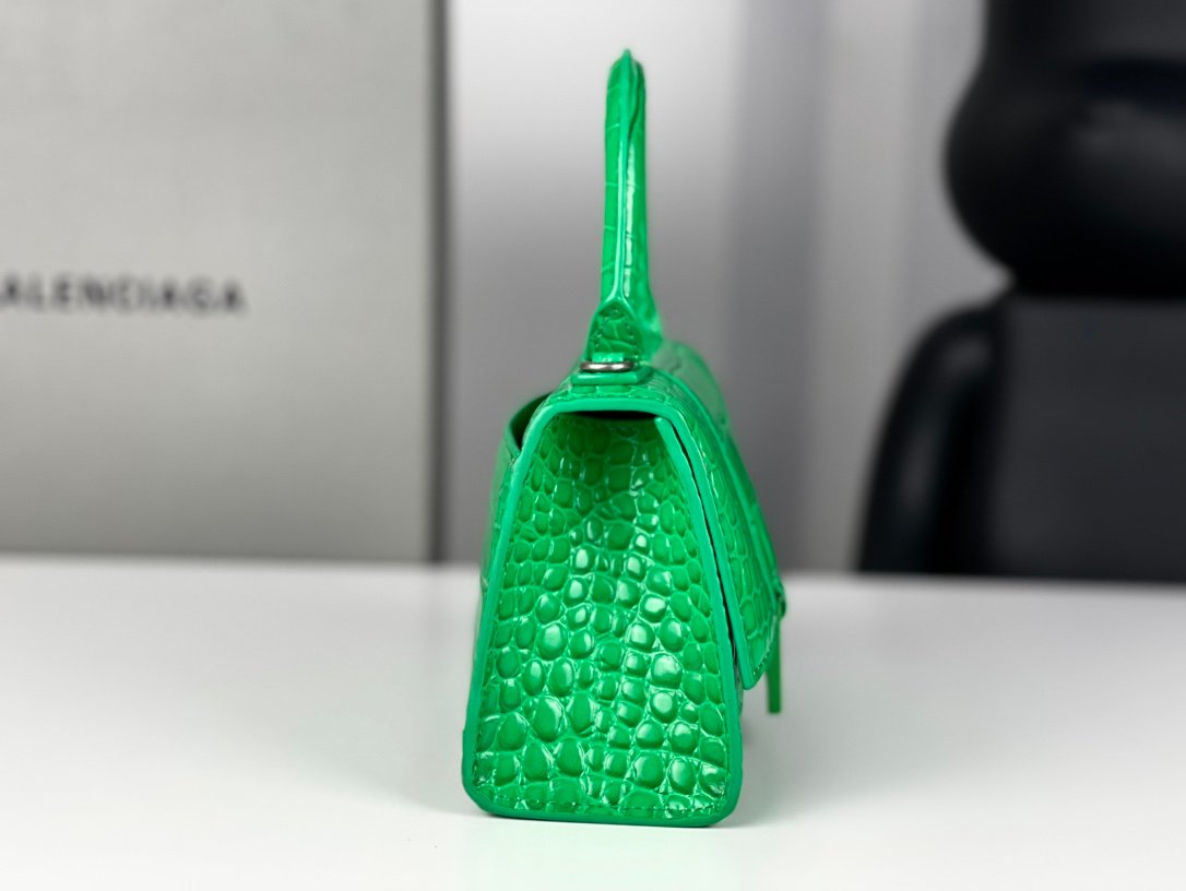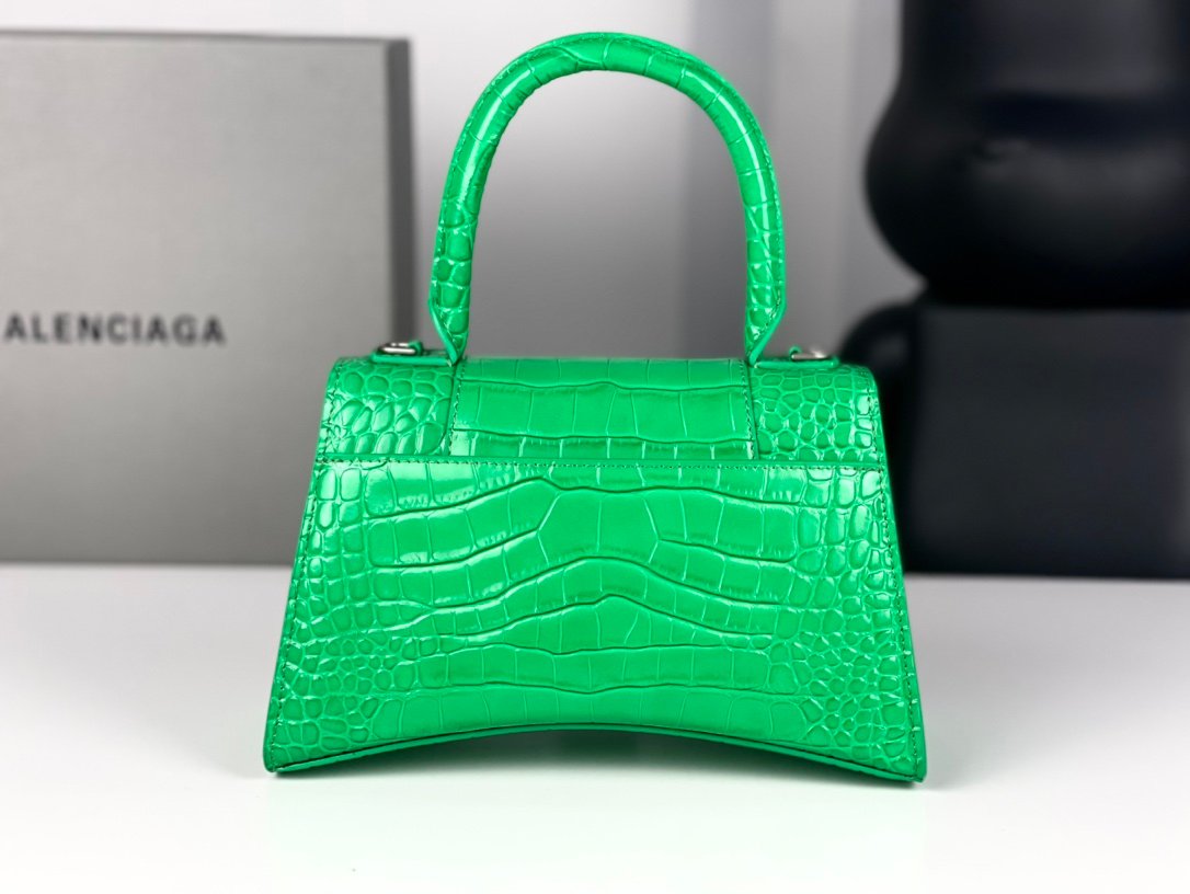 #𝗕𝗮𝗹𝗲𝗻𝗰𝗶𝗮𝗴 𝗮# Grass Green Green Buckle Crocodile Print n [Upgraded Original Leather Version] Size S - 2⃣️ 3⃣️cmn Original Leather Version 𝗛𝗼𝘂𝗿 𝗴𝗹𝗮𝘀𝘀 Hourglass bag New arrival! n🌟Made of original Italian cowhide leather, it feels great to the touch and shows off your taste at all times! n🌟 Imported bronze hardware! Super personalized B-shaped pull buckle, I give full marks to this design 💯, fashionable! Charming! n🌟 Unique iconic arc shape modeling is very recognizable, a glance makes people bright ah super cool! The appearance presents a round half-moon shape. n🌟 The inside of the bag is a large flat mouth, a zipper pocket inside, especially can be loaded! With lambskin lining, the loss is extremely high, the cost is extremely high! Do the best goods, waiting for the most knowledgeable you! n Model: 127 Crocodile Printnn XS size: 19x8x21cmn S size: 23x10x24cm