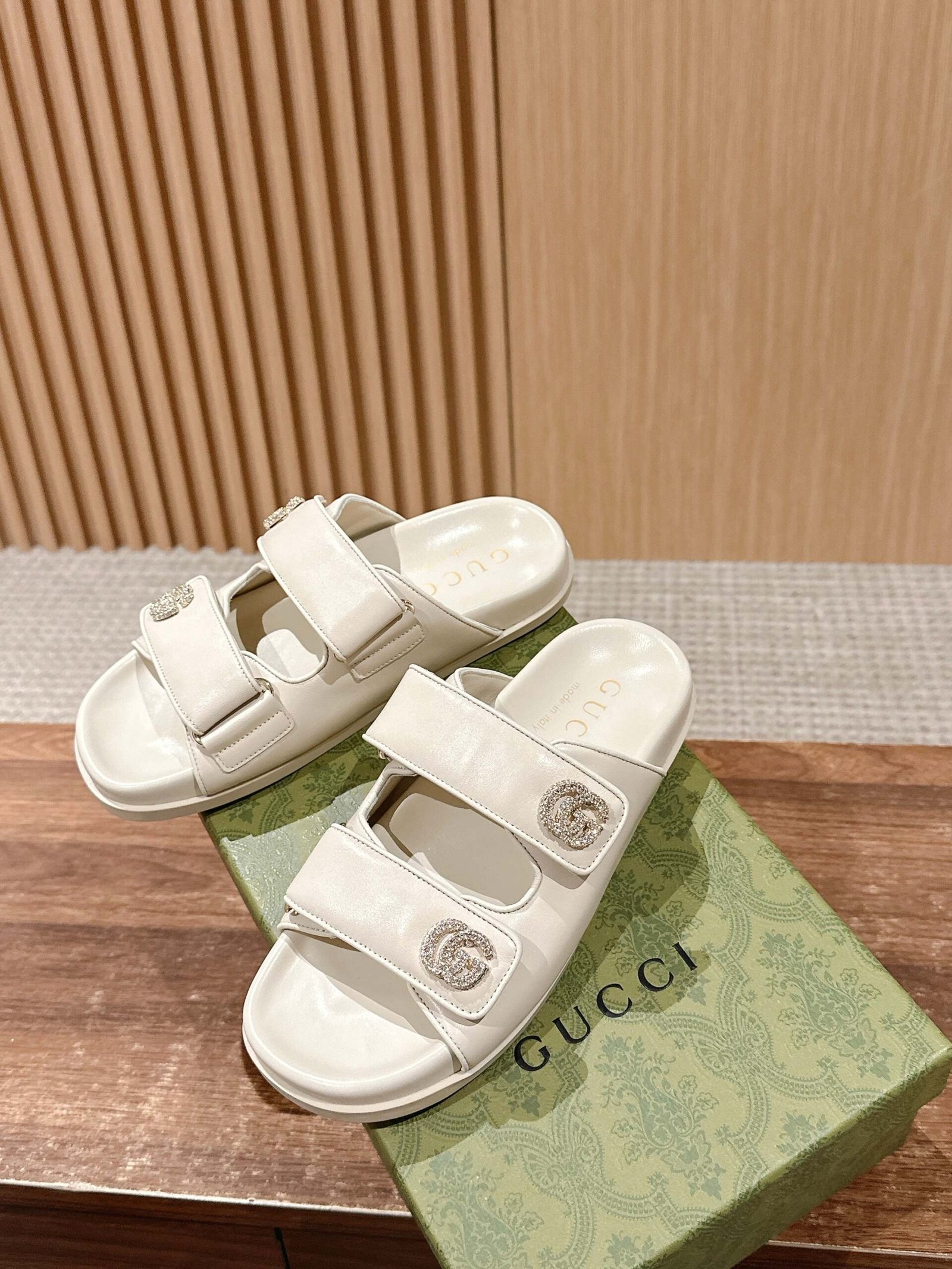 โจ]๐๐๐๐๐#Gucci Official Website Double Velcro G Buckle Drill Beach Slippers