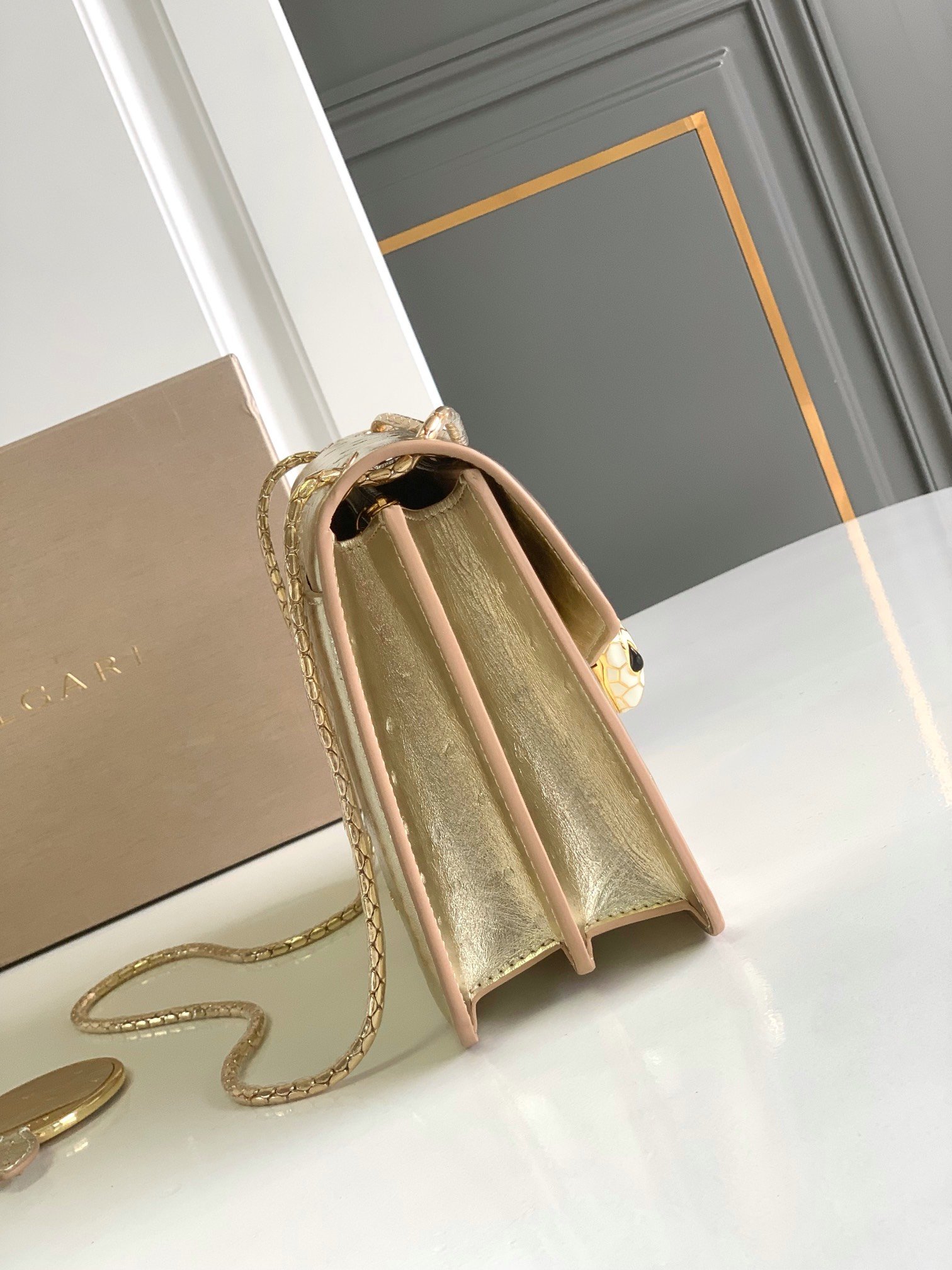 🔻 The artwork is paired with a snake chain shoulder strap adorned with an iconic snake head magnetic clasp