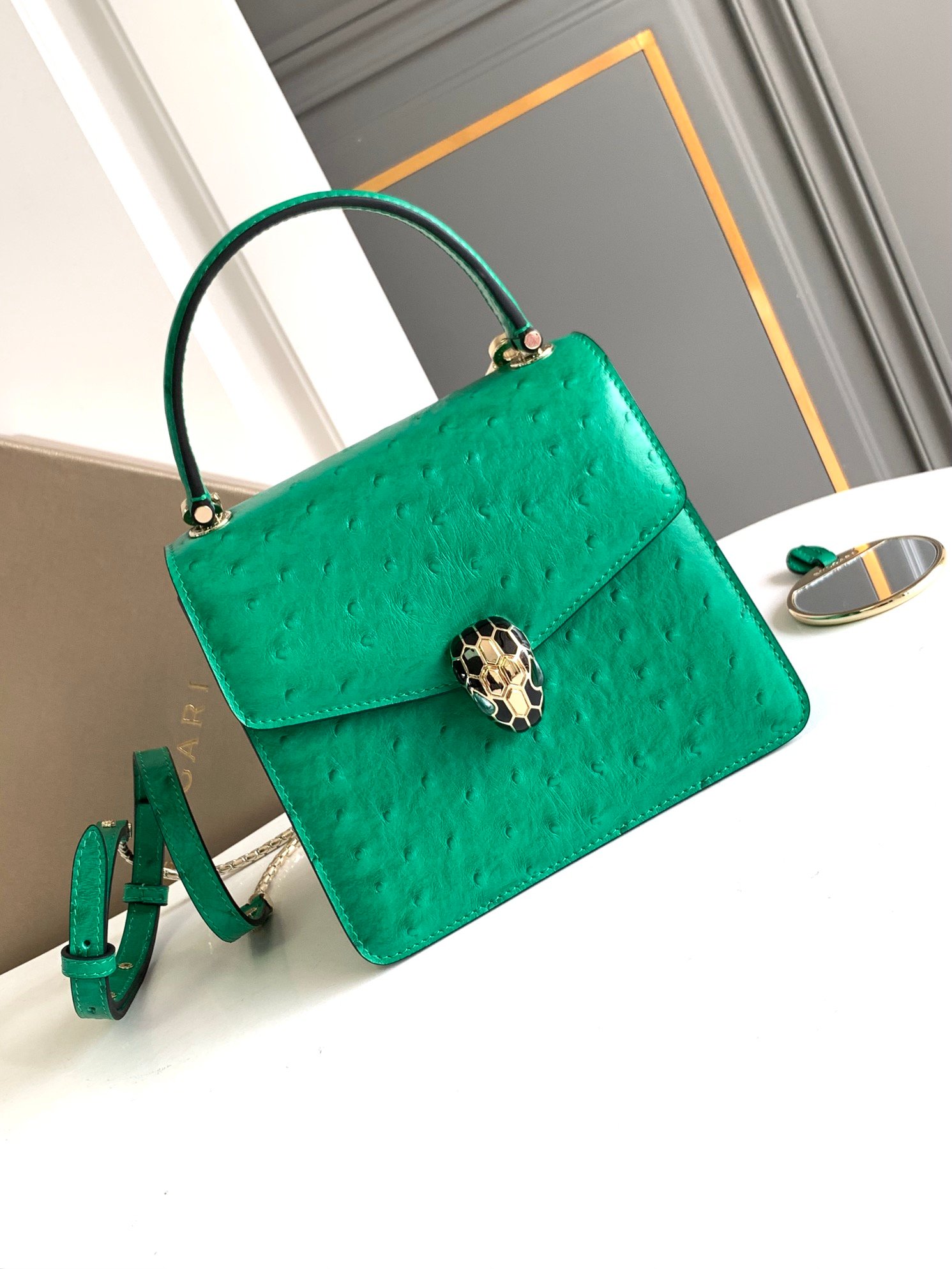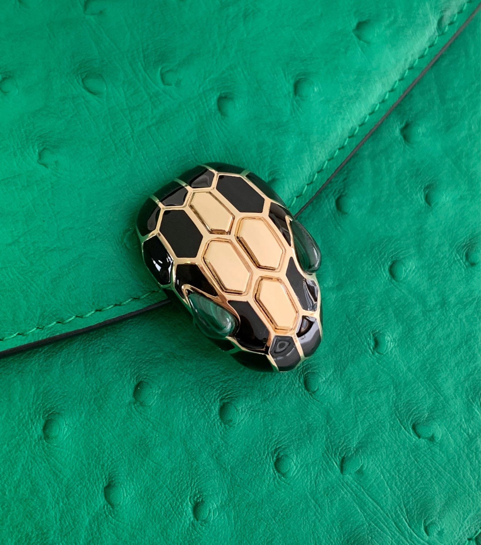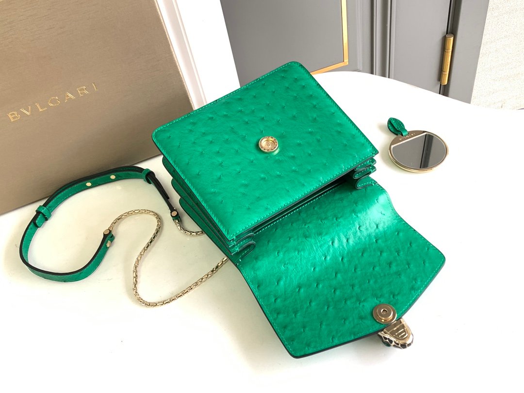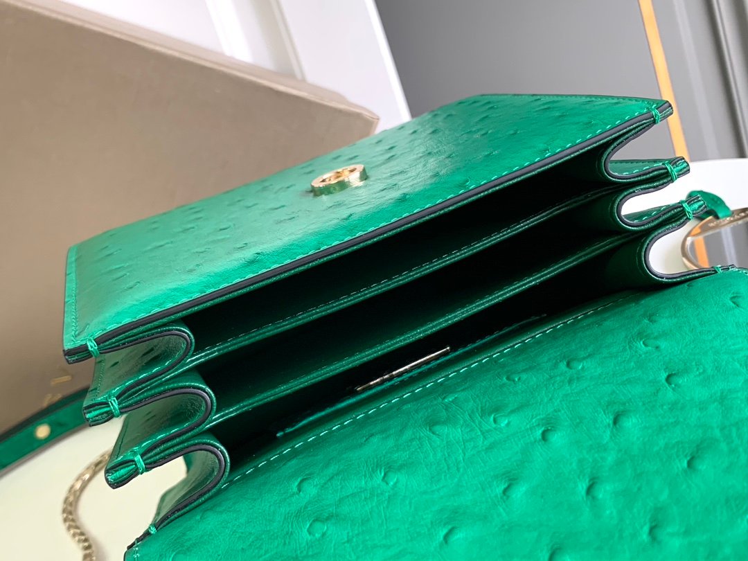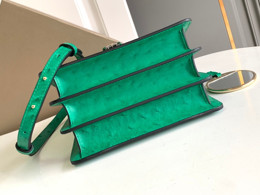 🔸 The bag body is made of charming emerald green ostrich patterned calf leather material