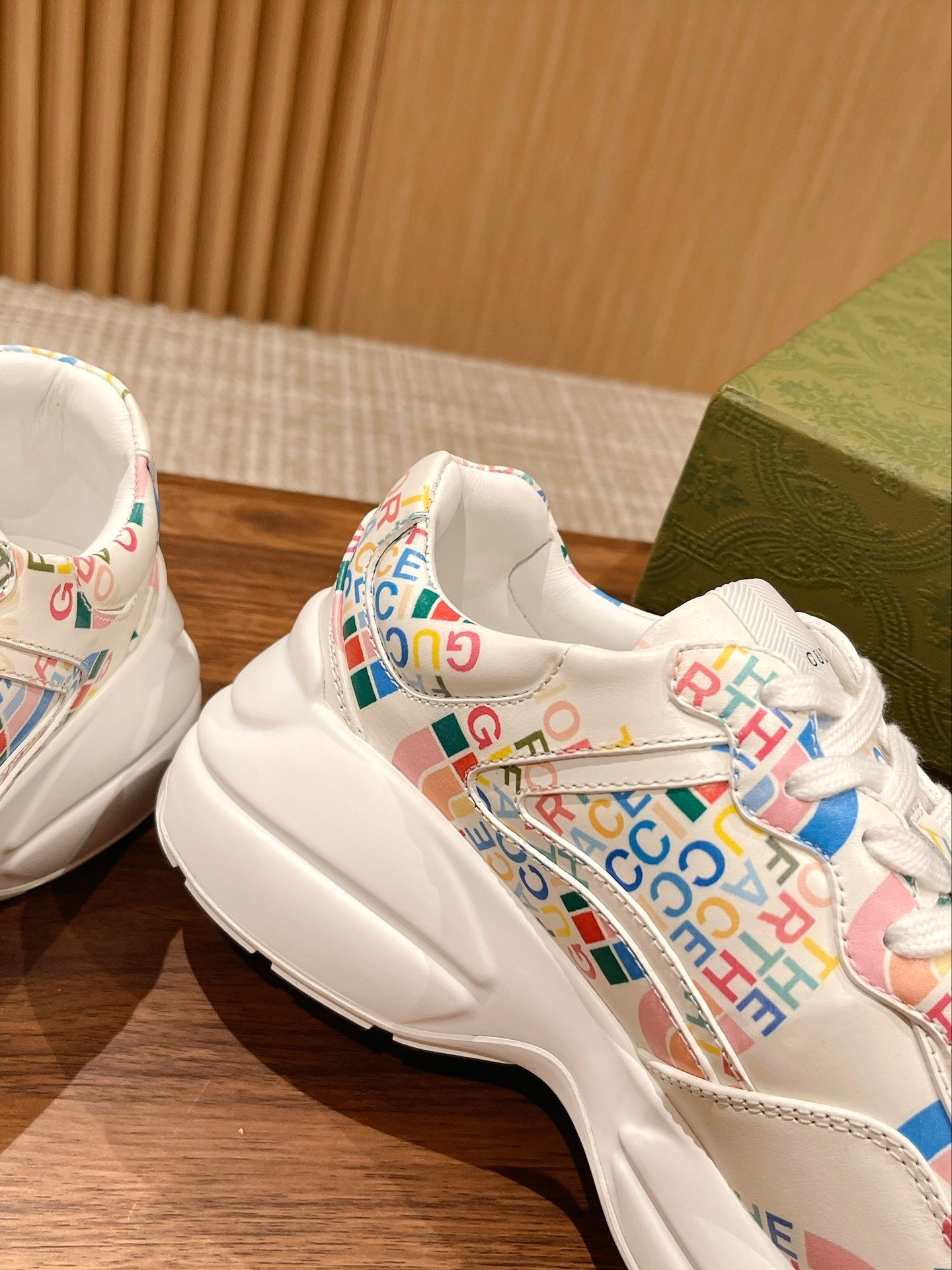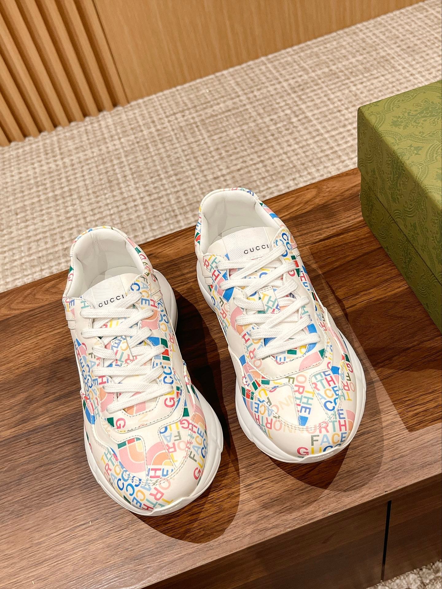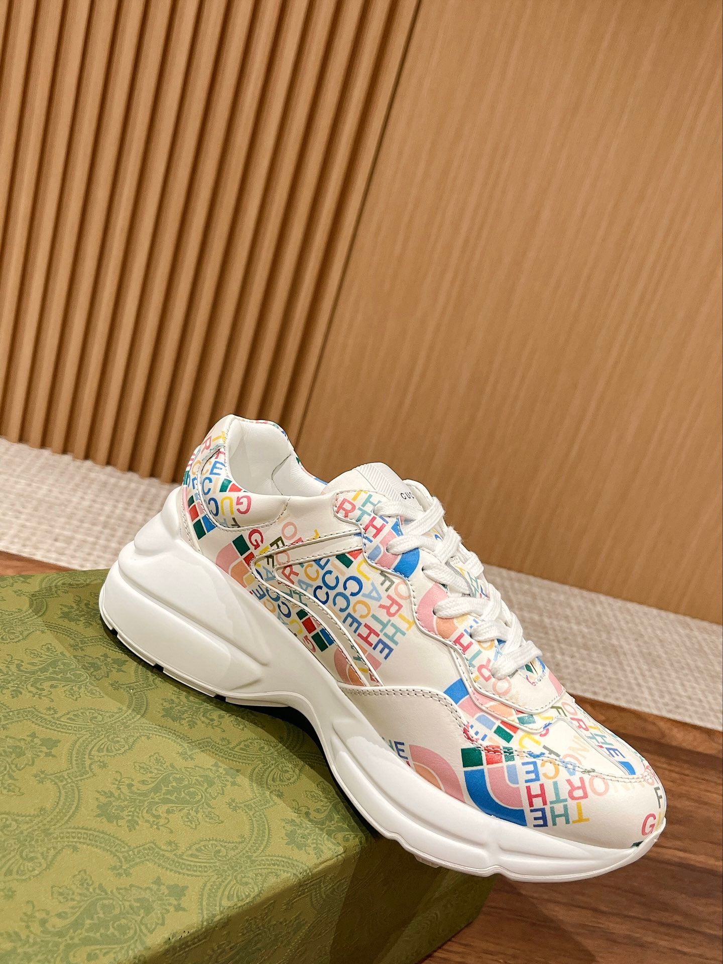 ✨ 𝗚𝘂𝗰𝗰𝗶# The product is constantly upgraded, both in kind, or pictures, are upgraded, the quality of the ascending not to increase the price, the more we do closer to the authentic Dongguan sources The highest version of the Rhyton classic pops shoes series of couples models Shoe sole Thick sole 5cm