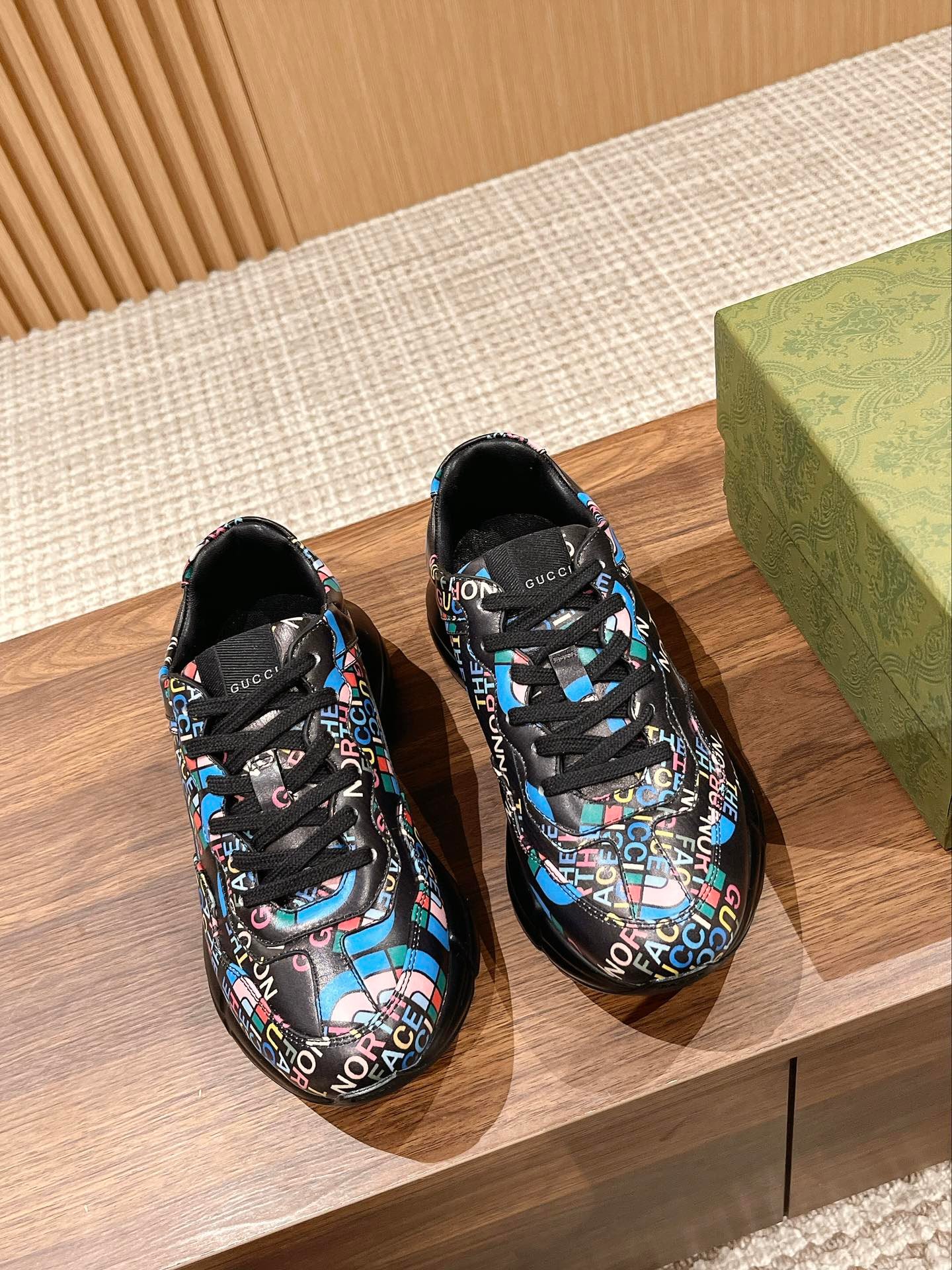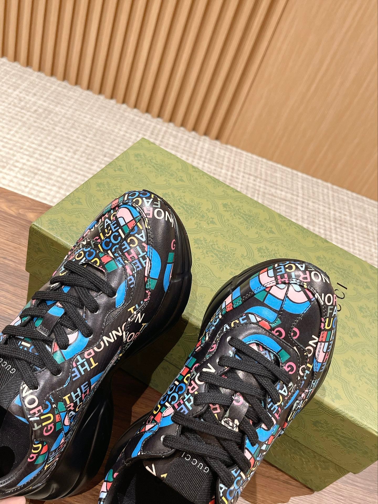 ✨ 𝗚𝘂𝗰𝗰𝗶# The product is constantly upgraded, both in kind, or pictures, are upgraded, the quality of the ascending not to increase the price, the more we do closer to the authentic Dongguan sources The highest version of the Rhyton classic pops shoes series of couples models Shoe sole Thick sole 5cm