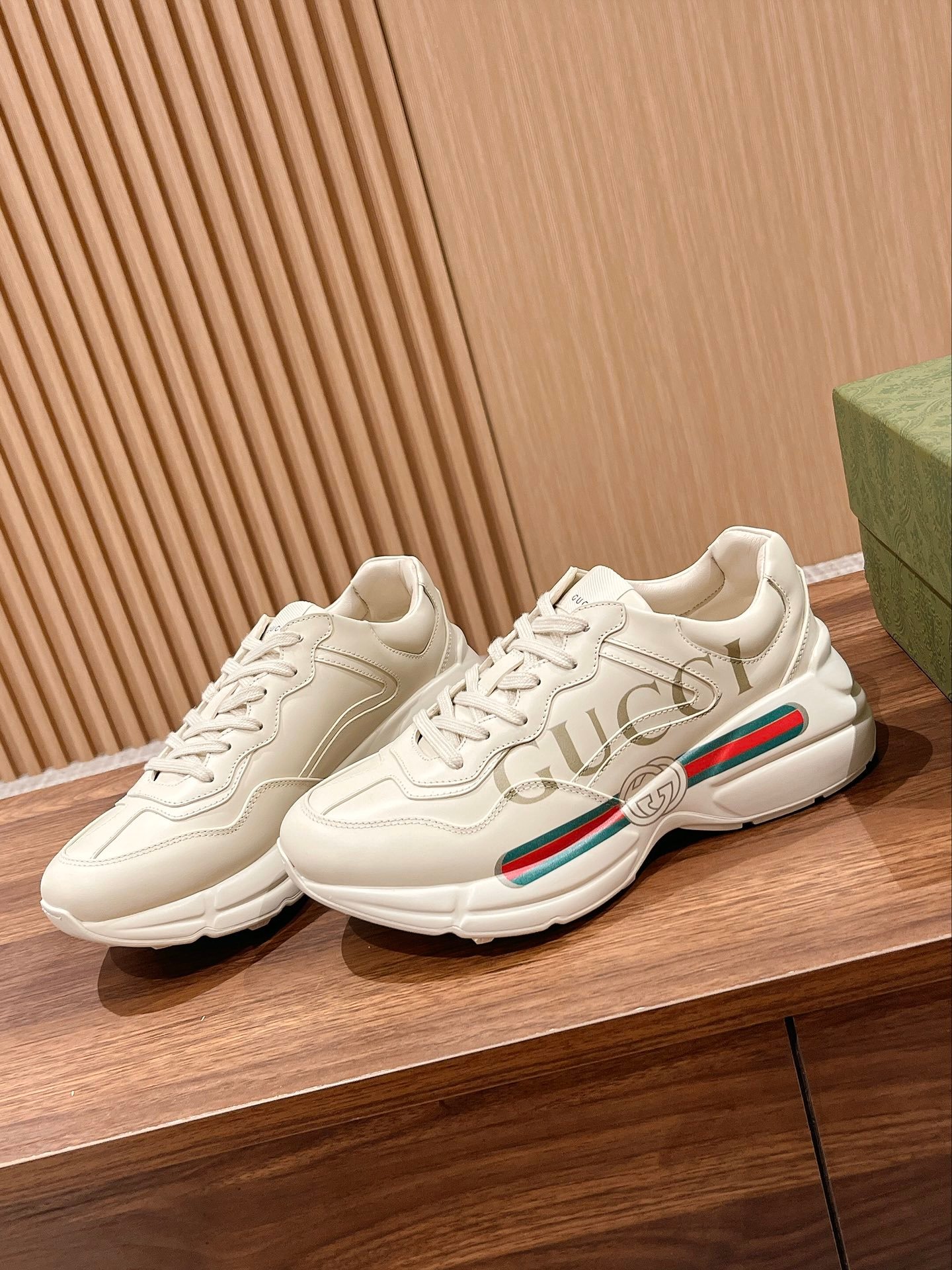 ✨ 𝗚𝘂𝗰𝗰𝗶# The product is constantly upgraded, both in kind, or pictures, are upgraded, the quality of the ascending not to increase the price, the more we do closer to the authentic Dongguan sources The highest version of the Rhyton classic pops shoes series of couples models Shoe sole Thick sole 5cm