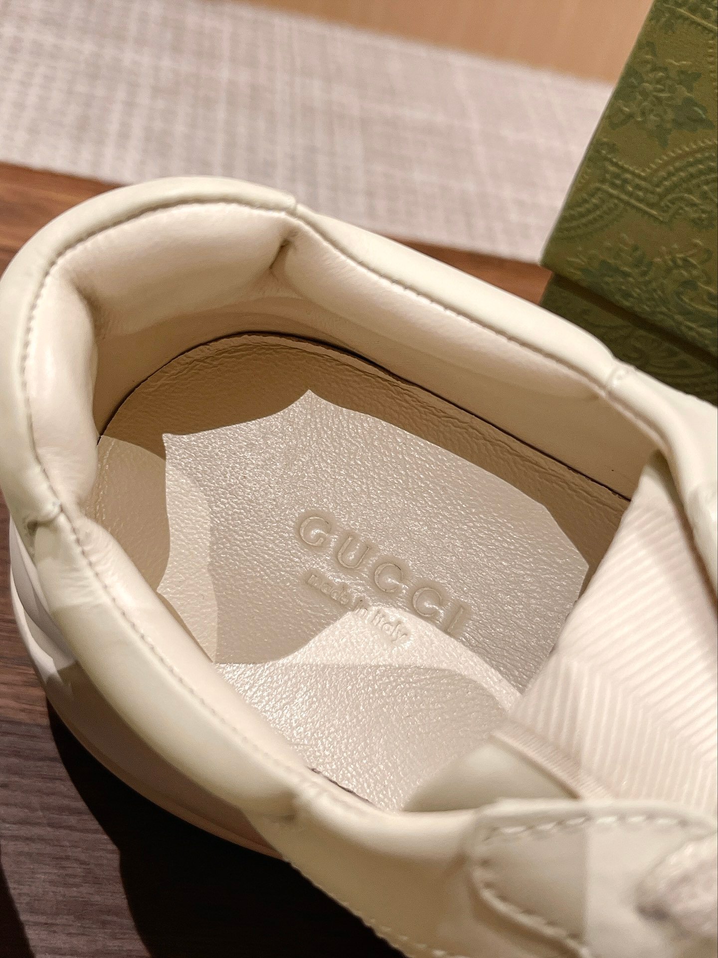 #Couple Size [White Old Fashioned] 𝐆𝐮𝐜𝐜𝐢 𝐑𝐞-𝐖𝐞 𝐛 As Sabato De Sarno’s first sneaker for Gucci, the Re-Web collection reinterprets the brand’s classic stripes with bold, irreverent detailing against a modern silhouette crafted in white leather, the new sneakers are embellished with a number of the brand’s iconic details and a bright red and green lace-up tongue, making them an instant favorite. The white leather is specially treated to be soft and supple with an embossed grained texturenn handwritten Gucci logo and interlocking double G webbing labeln with interlocking double G and handwritten Gucci logoRubber outsolen with interlocking double G detailingEyeletsn with webbing tongueSize: Women 35-40M Men 39-44M
