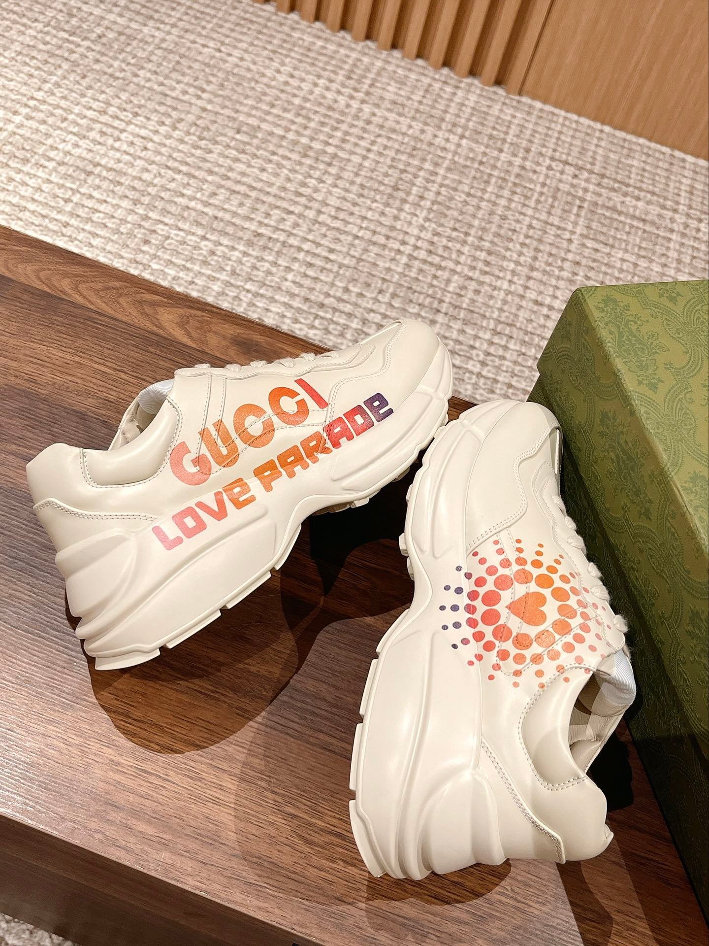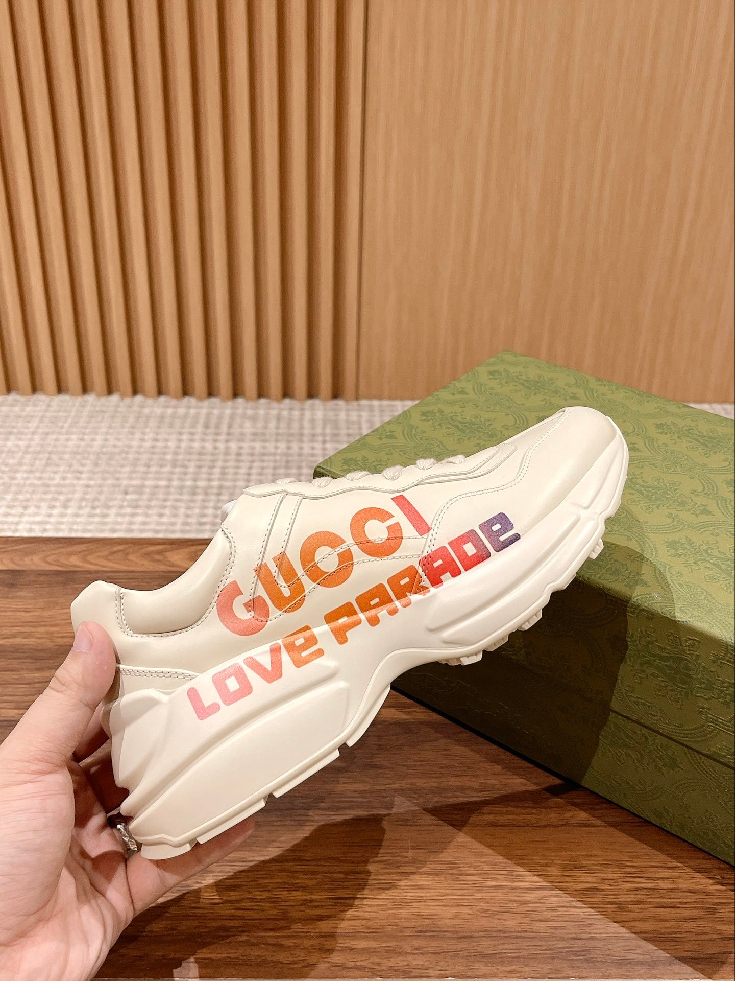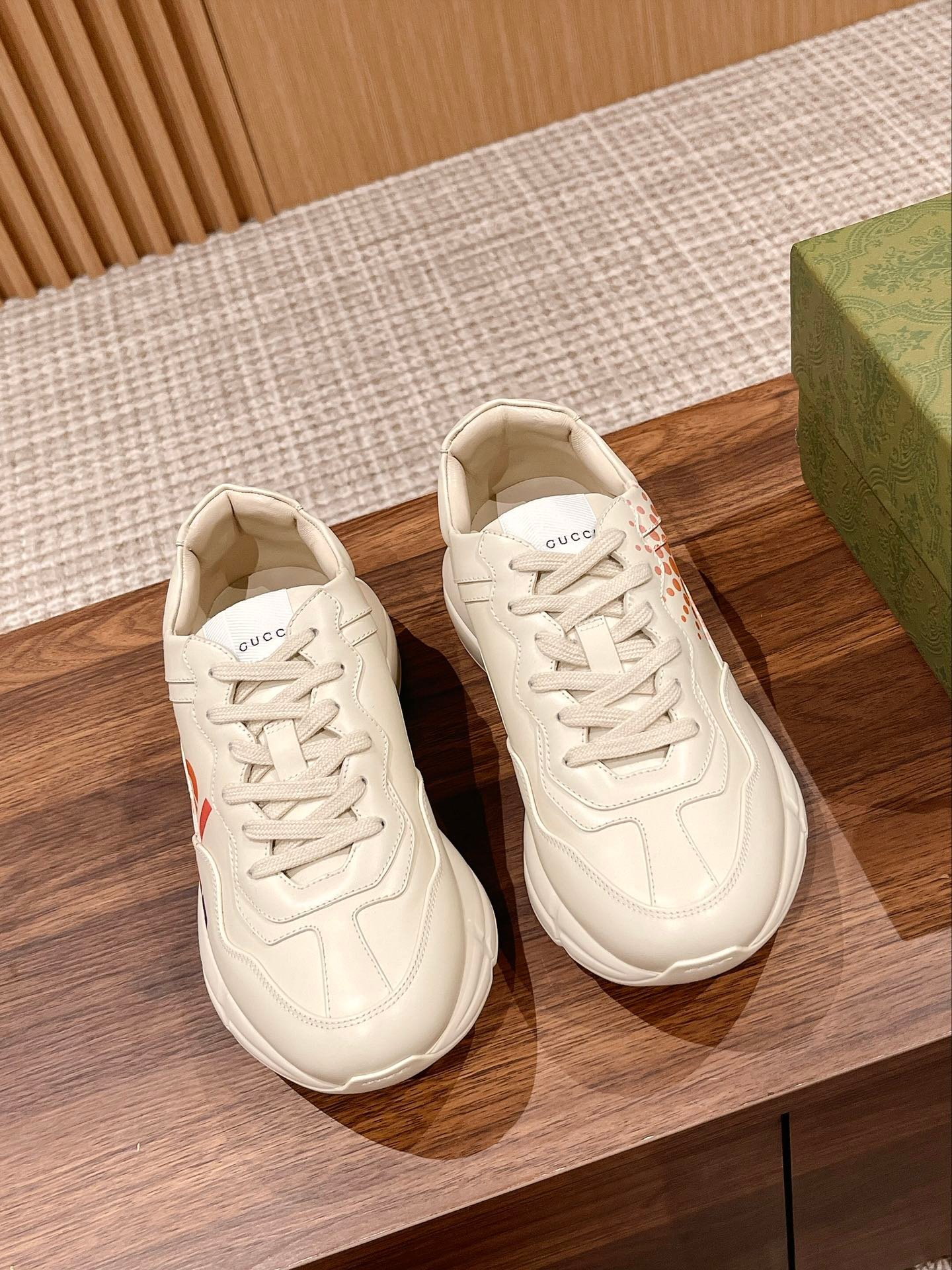 ✨ 𝗚𝘂𝗰𝗰𝗶# The product is constantly upgraded, both in kind, or pictures, are upgraded, the quality of the ascending not to increase the price, the more we do closer to the authentic Dongguan sources The highest version of the Rhyton classic pops shoes series of couples models Shoe sole Thick sole 5cm