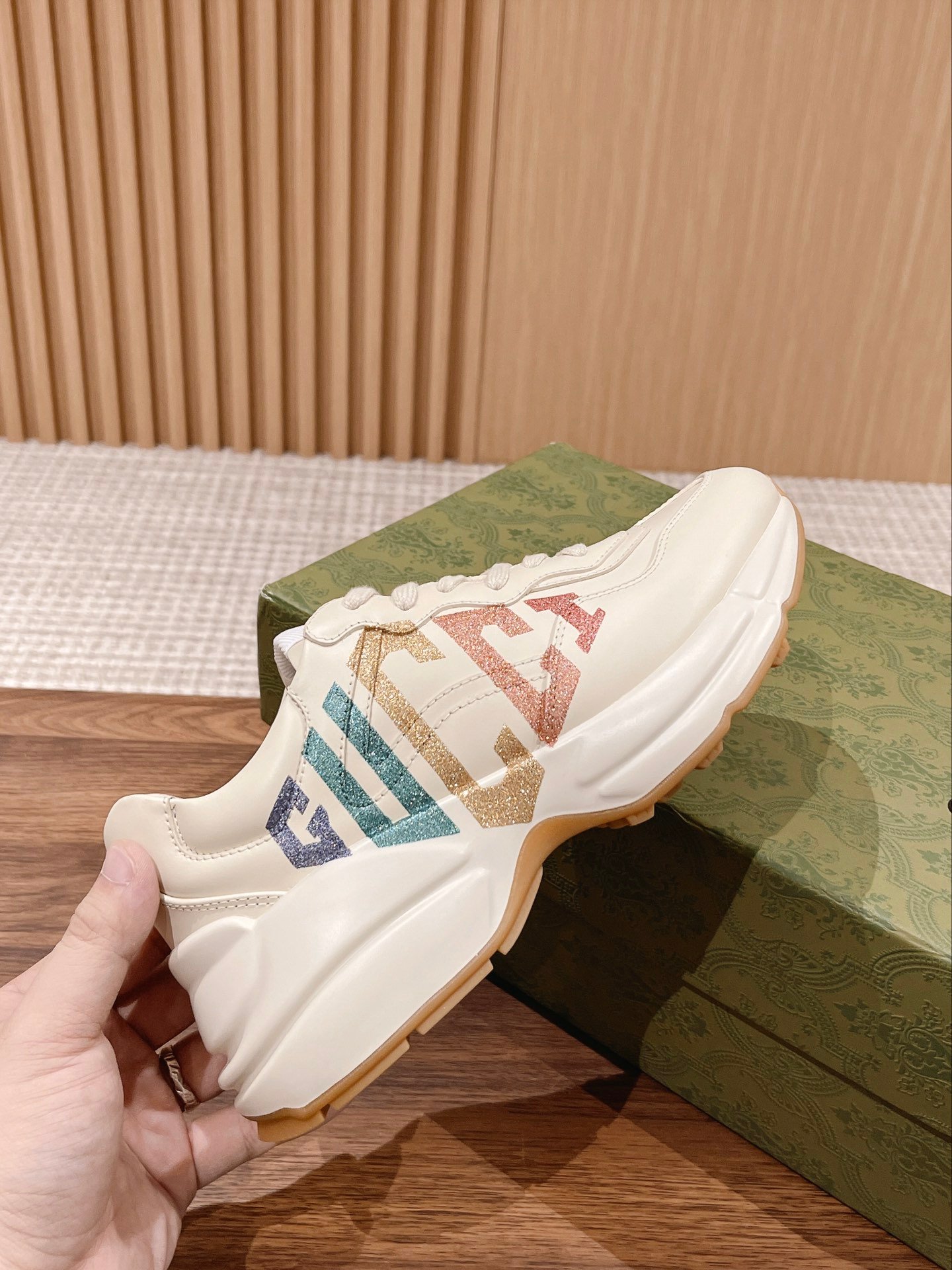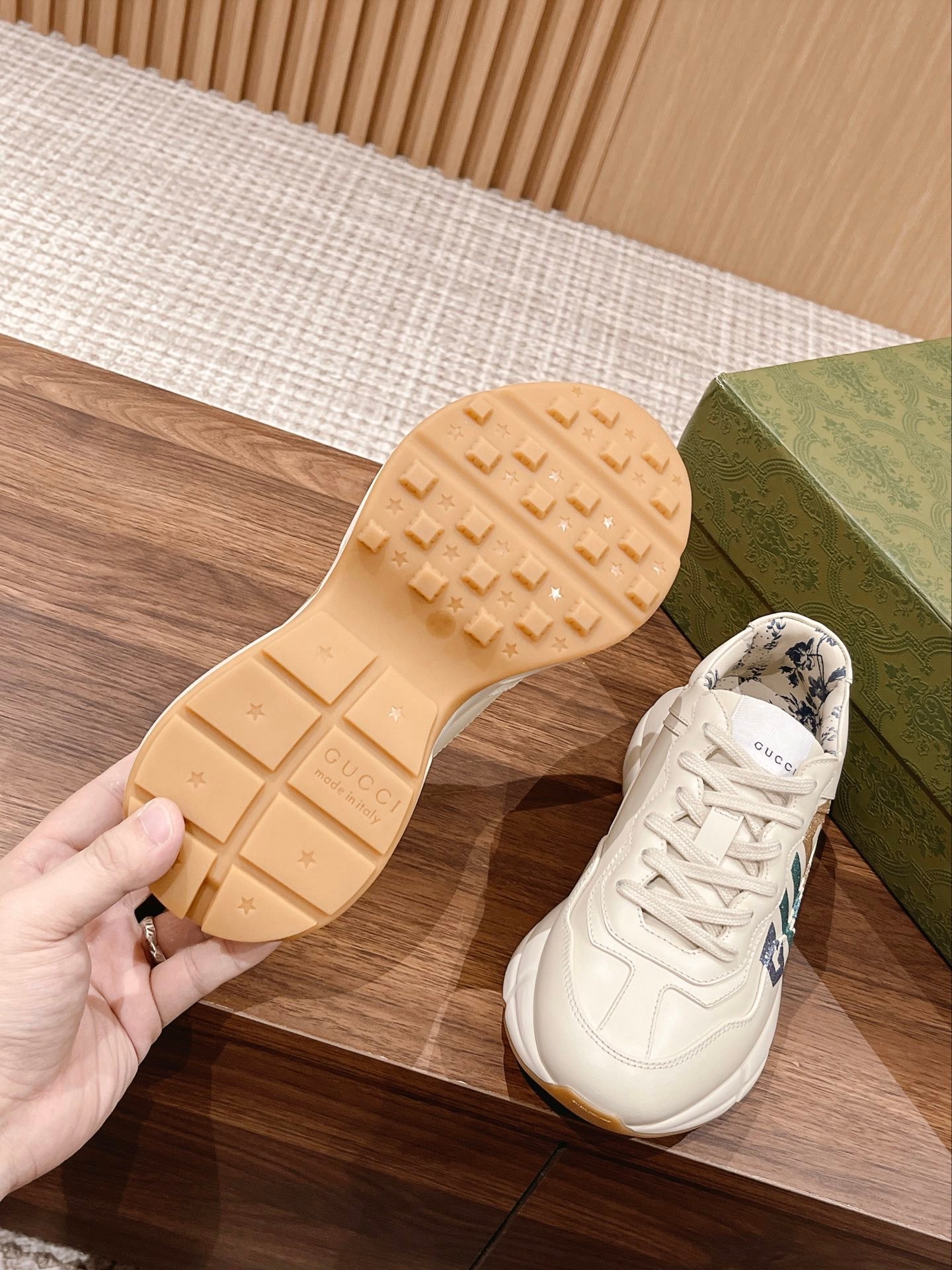Home SHOES GUCCI ✨ 𝗚𝘂𝗰𝗰𝗶# The products are constantly upgraded, both in kind and in the picture, are upgraded, upgraded quality does not increase the price, the more we do more and more close to the genuine Dongguan source The highest version of Rhyton classic pops shoes series couple models Shoes sole Thick bottom 5cm Size: women’s shoes 35-39 men’s shoes 39-44 High-end goods to differentiate the market in the upper version of the goods quality to see the actual shooting details in place the original 1:1 molding big goods feel good weight standard main factory advantageous source of goods Hao purchased dozens of authentic development of the official website synchronized launch of the new color updates the fastest speed of the fastest color the most complete color The most important thing is that we dozens of color all the spot spot spot spot spot, the source of supply is very stable and reassured push quality Details of the circle points as follows (1) men’s shoes heel LOGO, women’s shoes do not LOGO, men’s shoes toe go double line, women’s shoes go single line (2) the bottom of the outsole bottom piece changed into a double-layer combination of the bottom (3) the face of the stitch with the original version of the same (4) the original version of the upper cowhide leather, lining lambskin (5) the bottom of the shoes small holes in the TPU material plus wear-resistant foam (anti-wear cushioning) (6) upgraded high-quality and colorfast 5D technology computer Synthetic printing technology (7) upgraded to do the old effect of genuine consistent effect (8) the original box and original packaging supporting the upgraded box with the original consistent chip (9) violet fluorescent anti-counterfeiting line on the upper midsole line outside the laser anti-counterfeiting insole midsole fluorescent light under the two circle point (10) different graffiti pattern leather color is different all the right version of the different patterns of the cloth markers are also different patterns are different lining pattern is also different, the leather color gradation is also different Ultimate Perfection (12) the midsole cloth is also different from the leather color gradient (12) the midsole cloth is also made of small holes TPU material with wear-resistant foam (wear-resistant cushion) (12) The midsole fabric is also our own molded two-color printing effect between the real and the virtual A few dollars of the midsole fabric also want to do the same version of the market only our one (13) The outsole is the original version of the private molded outsole convex and concave Version of the non-market common parallel bottom (14) Anti-counterfeiting scanning code (15) There are too many details, can not be listed.