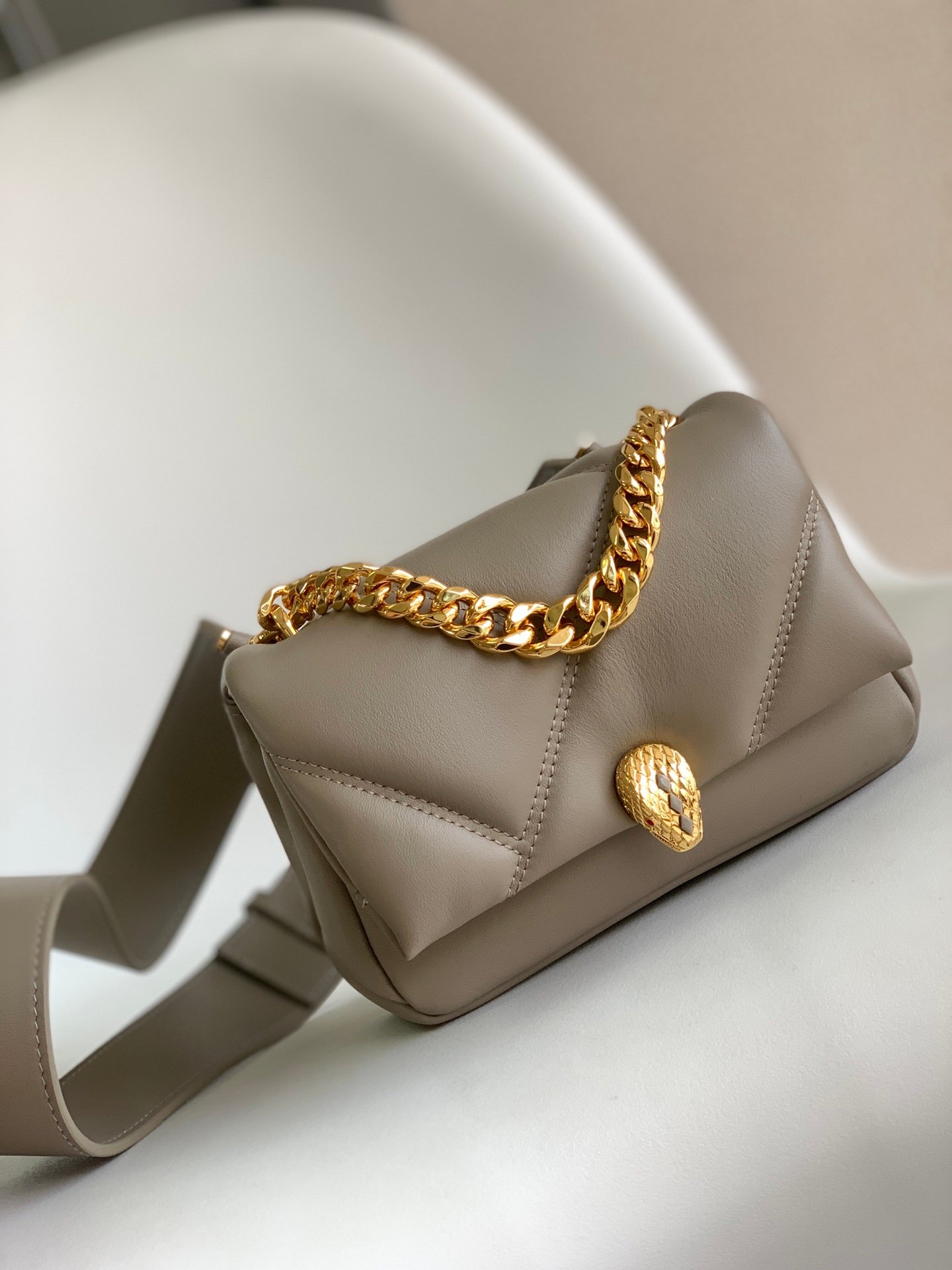 🔸 The classic BVLGARI The Bvlgari chain adorns the flap like a necklace