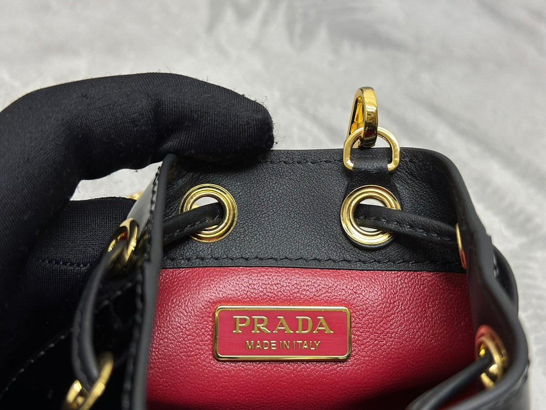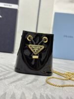 new pattern đ Lacquer leather small water bucket đ 1NR016 calf leather đđn This lacquered leather bucket is decorated with imported glossy cowhide and enamel coated metal triangular logo opening and closing design. The metal iron lace can be worn diagonally. Too cute đ, the effect is very eye-catching, can be fairy or cool, don’t you want to move đđ, Beautiful girls. Hurry up to get your hands on it. It’s so beautiful and adorable đđn Length 6x Width 9x Height 9.5cm