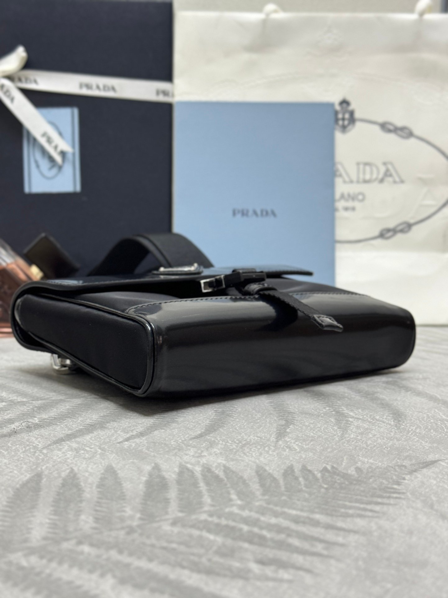 Home BAGS PRADA New Postal Postman Package 🎉 Mobile bag 2VD044 glossy leather/shipped out 👏👏n This shoulder bag is made of Re Nylon recycled nylon material and adorned with leather details, showcasing a modern mix of materials design. The recycled nylon yarn, ECONYL ®, is made by purifying recycled marine plastics, fishing nets and textile fibers. The body is adorned with an enameled triangular metal logo, creating a distinctive design with iconic elements from the brand’s history. This roomy 😘 is simple and airy. n length 20c height 15.5x bottom 4cm