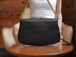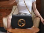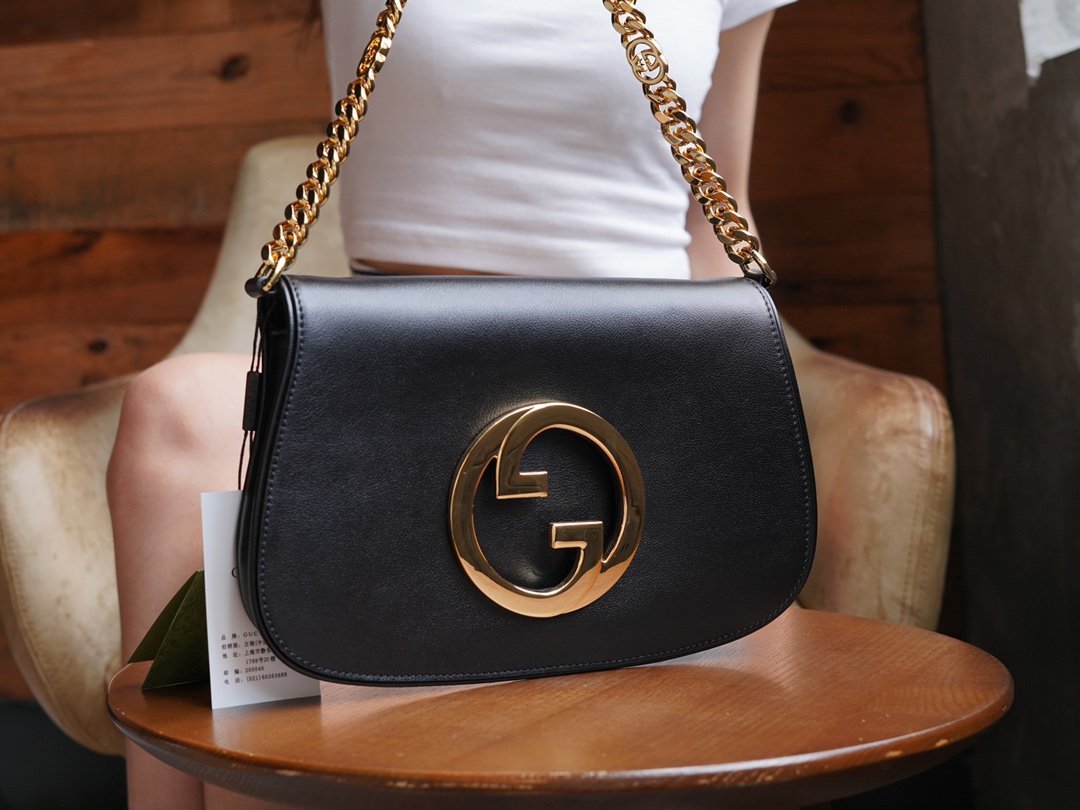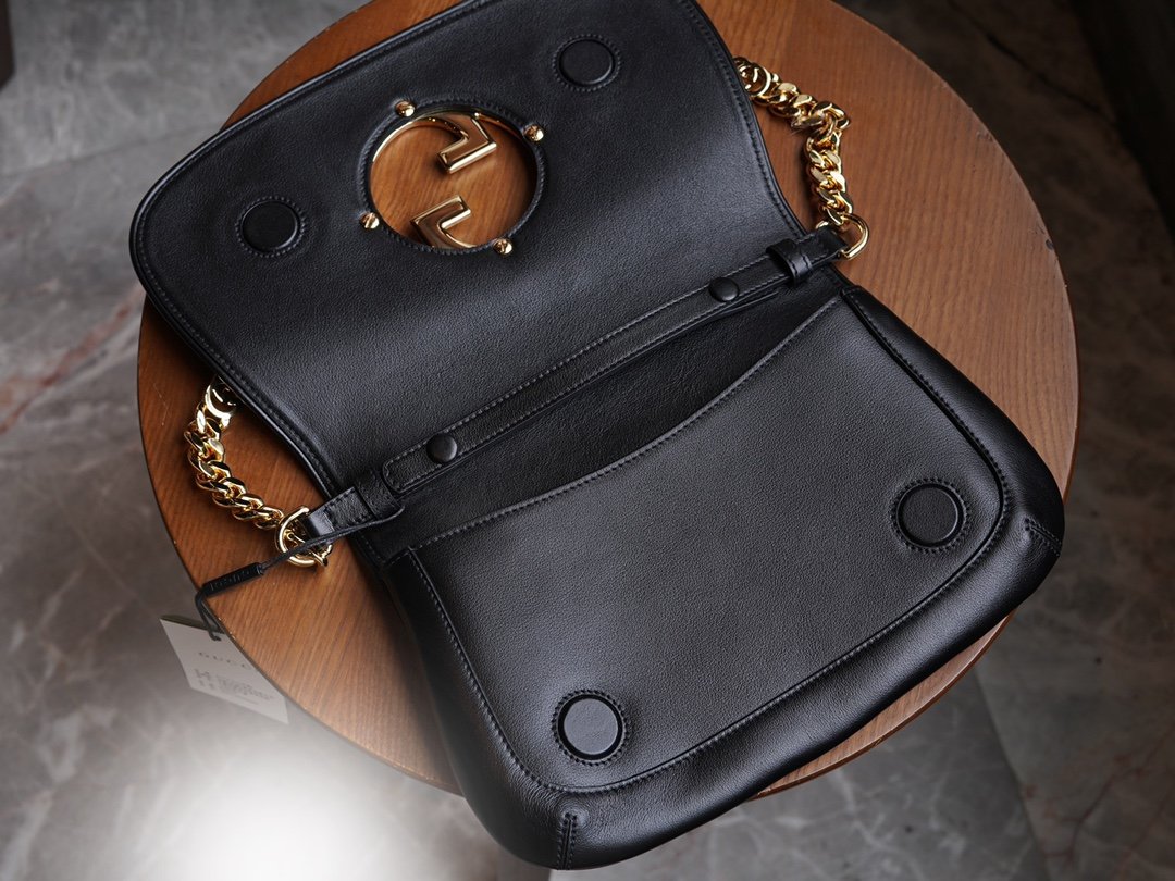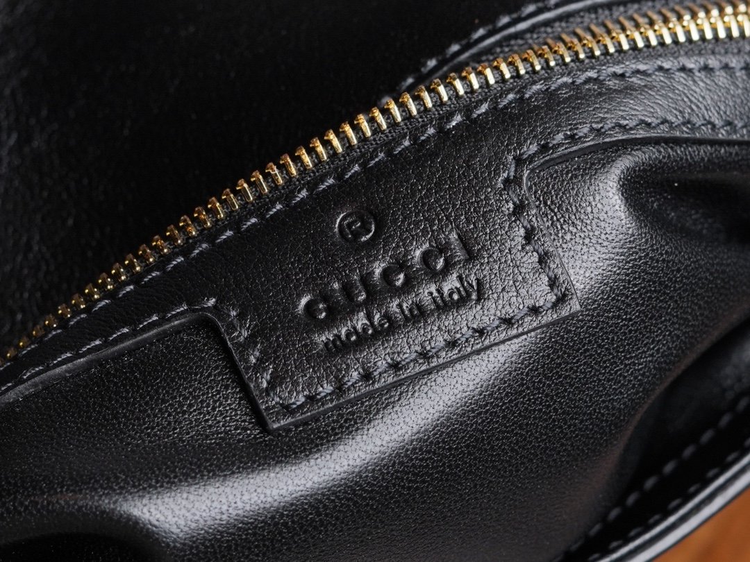 Retro elements meets classic details in a tribute to the glamor that pervades the catwalk. This shoulder bag is designed in black leather with a delicate chain strap for a touch of timeless elegance. The rounded structure pays homage to the collection’s glamor with renewed style, while the historic Guccio Gucci initials intertwine to elevate the piece’s sense of style.