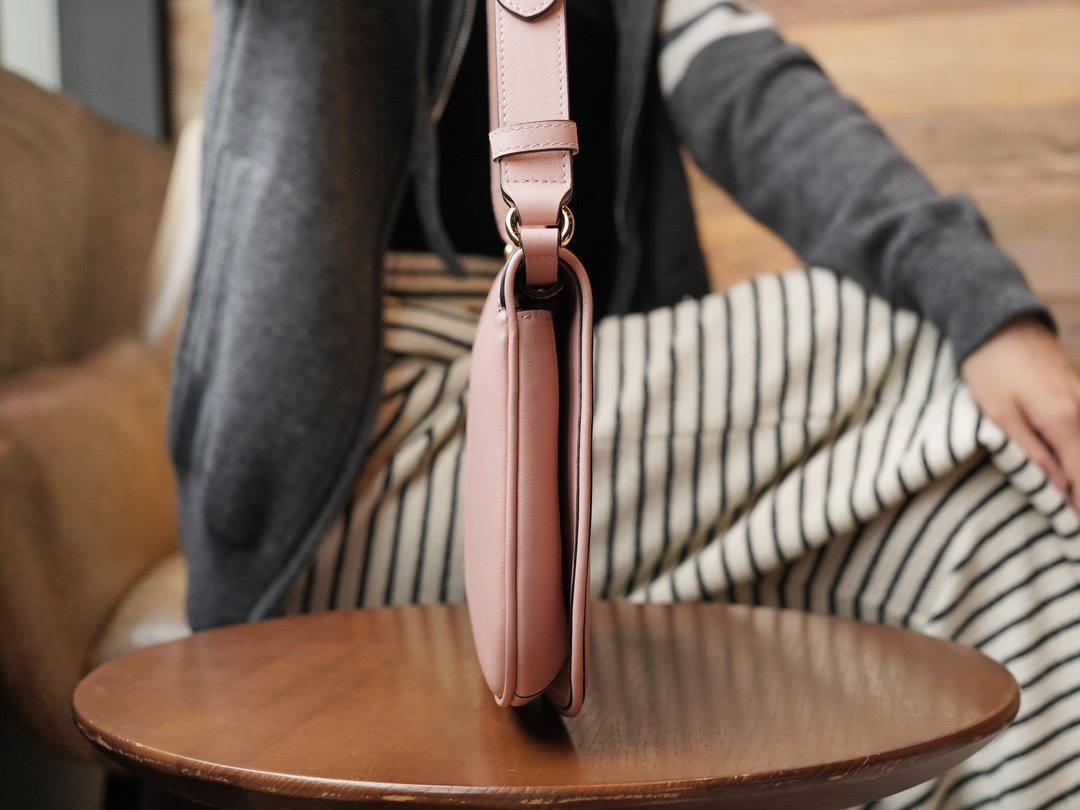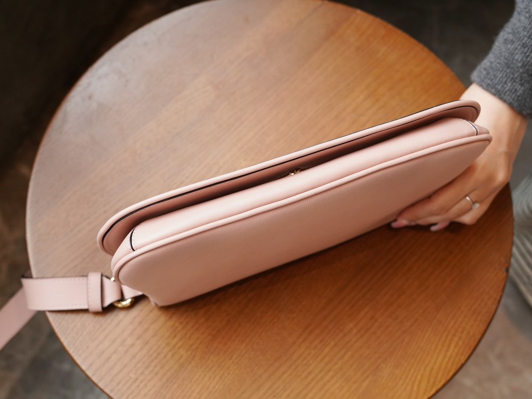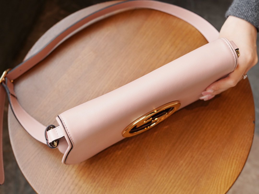 𝐁ðĨðĻ𝐧𝐝ðĒ𝐞 Collection Small Clutch Bag Light Pink nn vintage elements meets classic detailing in a tribute to the glamorous style that pervades the runway. This shoulder bag in light pink leather with a delicate chain strap has a classic and timeless elegance. The rounded structure pays homage to the collection’s glamor with a refreshed style, while the historic Guccio Gucci initials intertwine in a pattern that enhances the piece’s sense of style. nSize: 28*16*4cmnModel No.: 699268