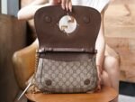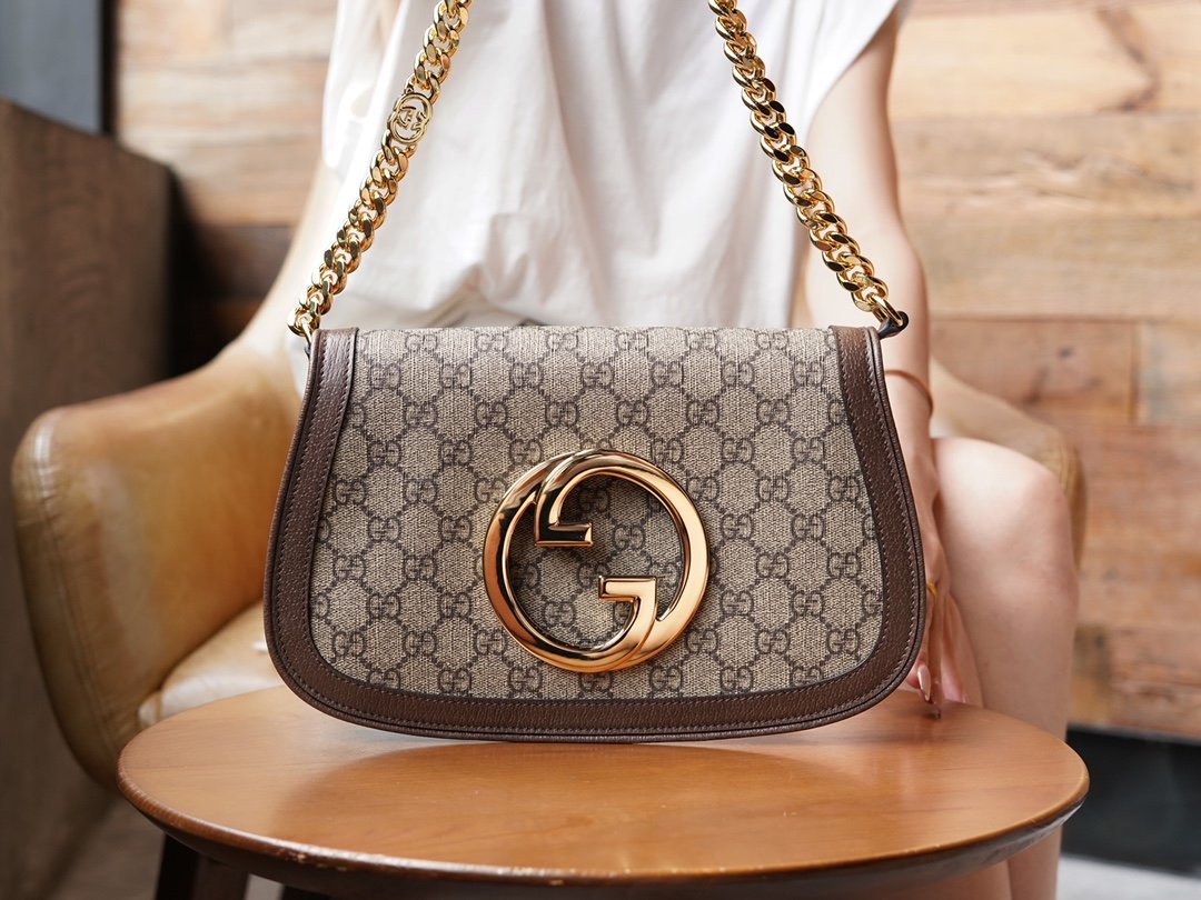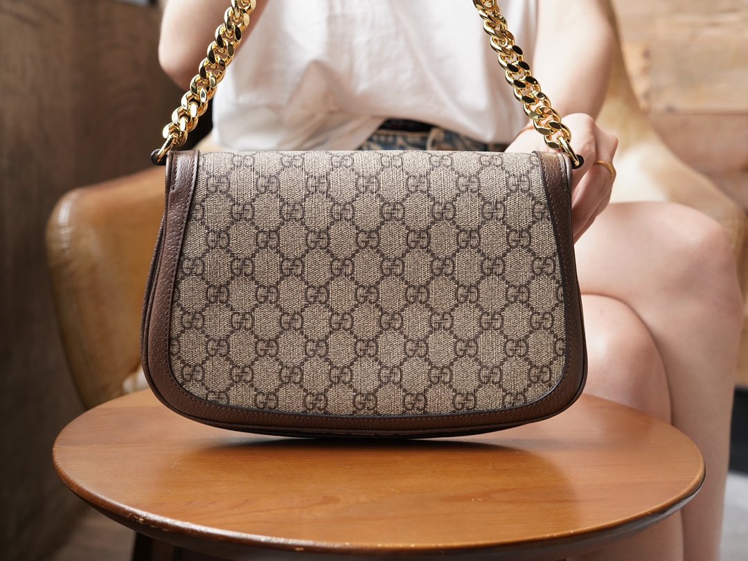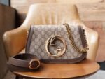 n Retro element meets canonical detailing to pay homage to the pervasiveness of the “March of Love” runway show The glamorous style of the fashion show “Love in Progress”. The GG Supreme canvas and the sophisticated chain strap design of this shoulder bag are a classic and timeless touch of elegance. The rounded structure pays homage to the collection’s glamor with a renewed style, while the historic Guccio Gucci initials intertwine in a pattern that enhances the style of the entire piece.