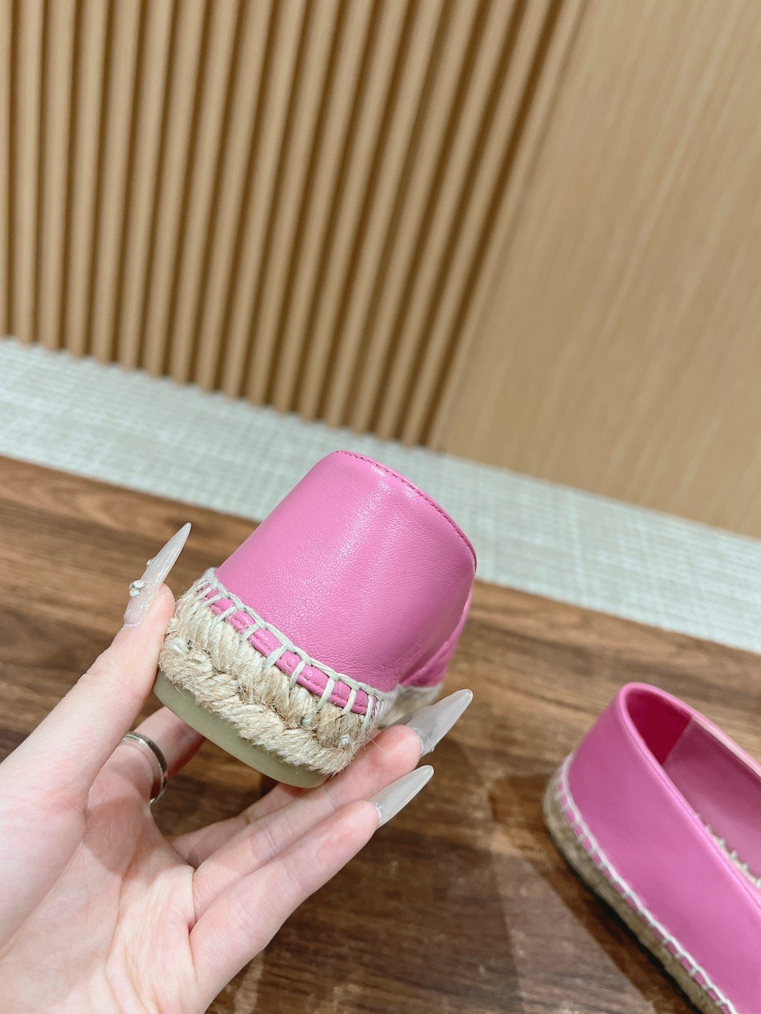 香奈儿经典渔夫鞋n史上最好穿的懒人鞋每年都会出新颜色 年年穿不腻年年永不会过时通勤逛街都非常ok n定制进口头层羊皮 布料麻棉面柔软羊皮内里 麻绳加纯手工编花注胶半透明橡胶原色大底 nnSize定做不退换
