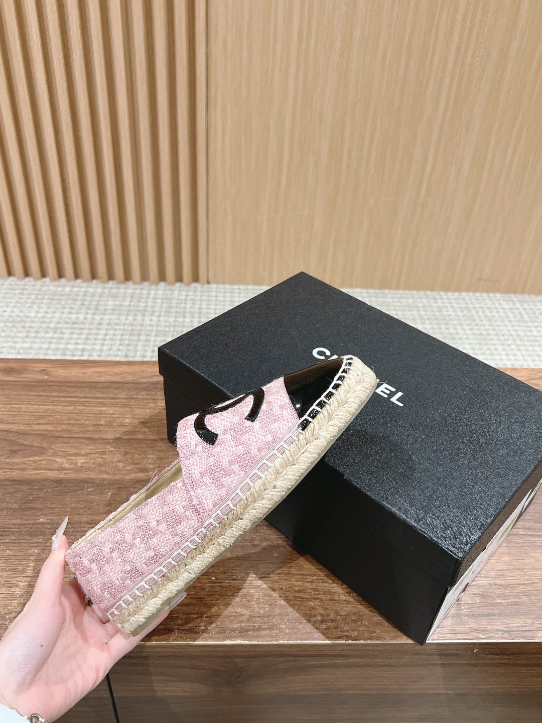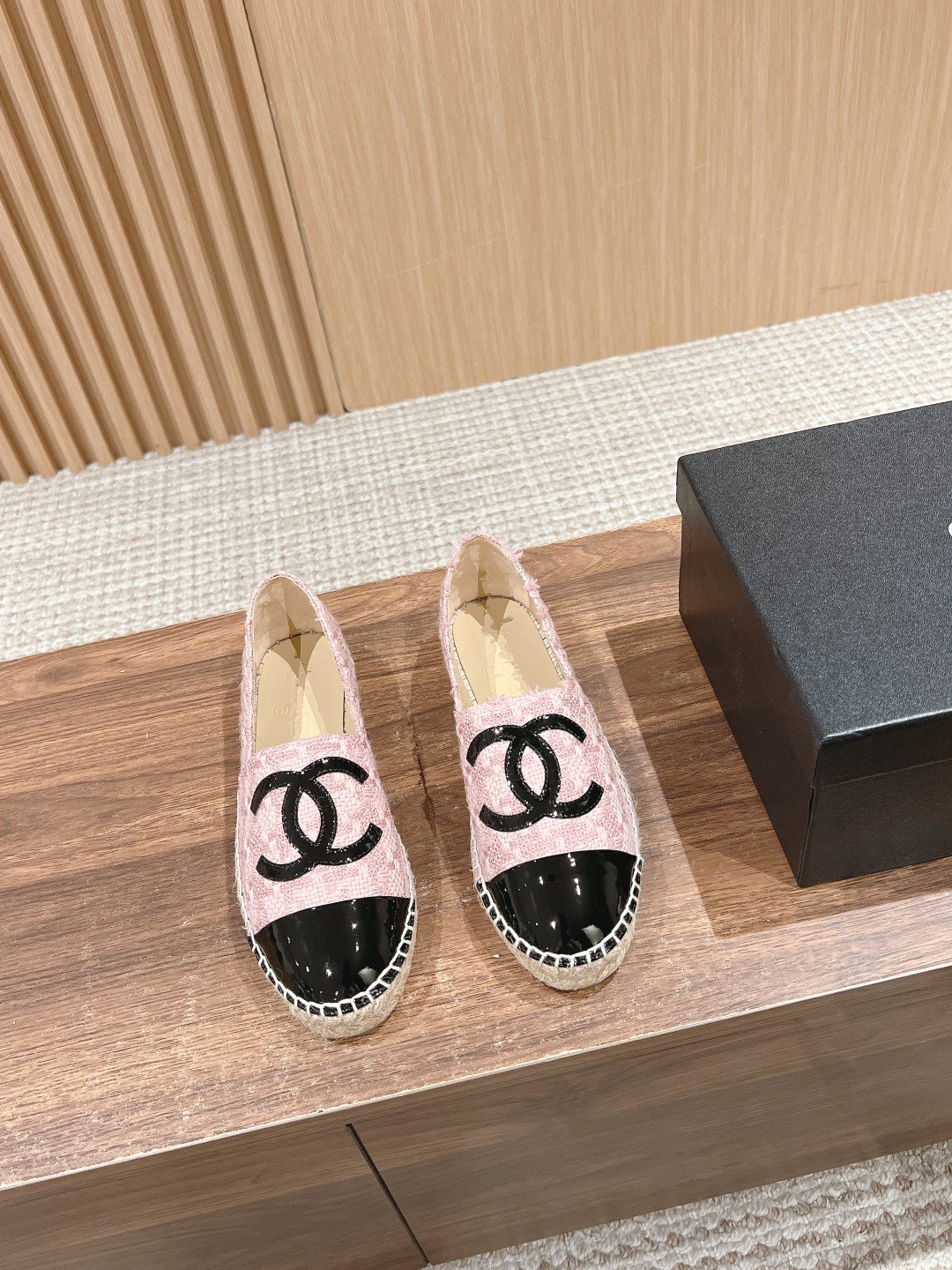 𝐂𝐇𝐀𝐍𝐄𝐋 Chanel Classic Fisherman's Shoes n the history of the best wearing loafers ~ every year will be out of the new color ~ year to wear not tired ~ years will never go out of fashion ~ commuting shopping are very ok! n customized imported first layer of sheepskin fabric linen-cotton surface! Soft sheepskin lining Sisal rope with handmade braided flowers ➕Injected rubber translucent rubber outsole in original color nnSize: 35-39 (40 customized non-returnable)