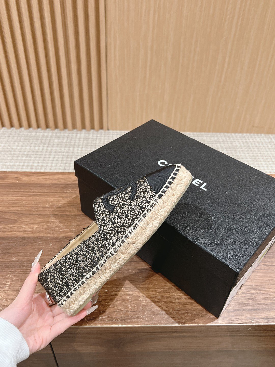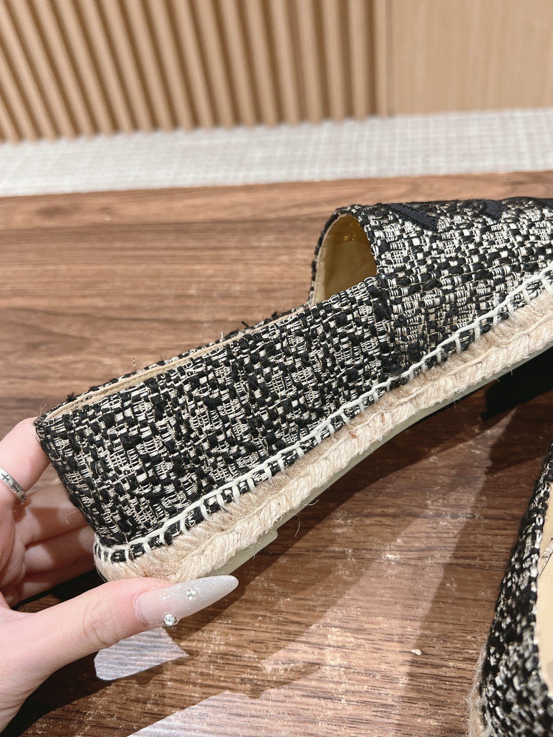 𝐂𝐇𝐀𝐍𝐄𝐋 Chanel Classic Fisherman's Shoes n the history of the best wearing loafers ~ every year will be out of the new color ~ year to wear not tired ~ years will never go out of fashion ~ commuting shopping are very ok! n customized imported first layer of sheepskin fabric linen-cotton surface! Soft sheepskin lining Sisal rope with handmade braided flowers ➕Injected rubber translucent rubber outsole in original color nnSize: 35-39 (40 customized non-returnable)