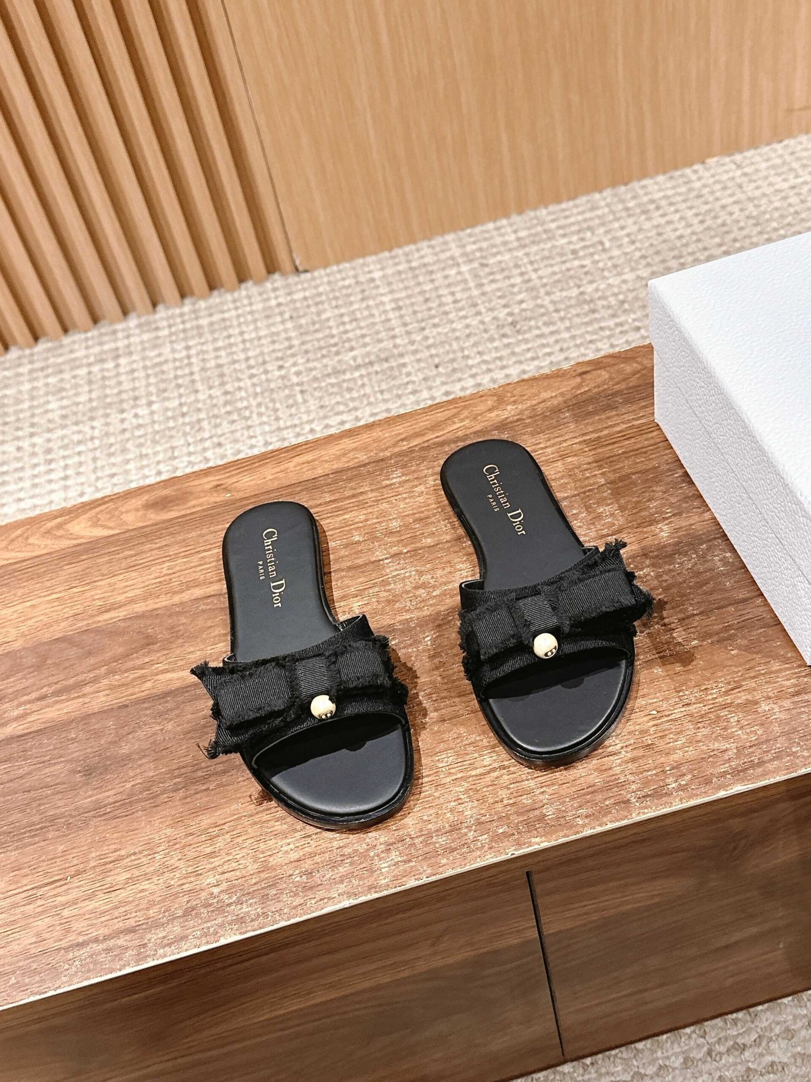 𝐂𝐇𝐑𝐈𝐒𝐓𝐈𝐀𝐍 𝐃𝐃 𝐈𝐎𝐑# Dior New Pearl Butterfly Slippers Black tasseled grosgrain uppers show off the fashionable style Embellished with white beads and bows to add elegance to the modern look