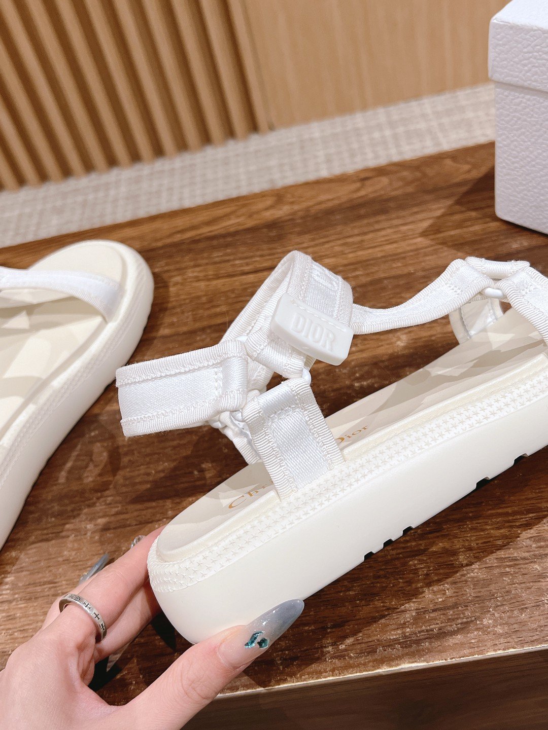 DIOR Dior spring and summer new thick bottom beach slippers Design concept sandals and sneakers elements with the combination of the style is very fashionable and fashionable hundred with the height of the upper two Velcro can be adjusted elastic! nn Specific technology fabric# Exclusive molded TPU+PU foam sole n sole thick heel 5cm forefoot 3cm Size: 35-41M