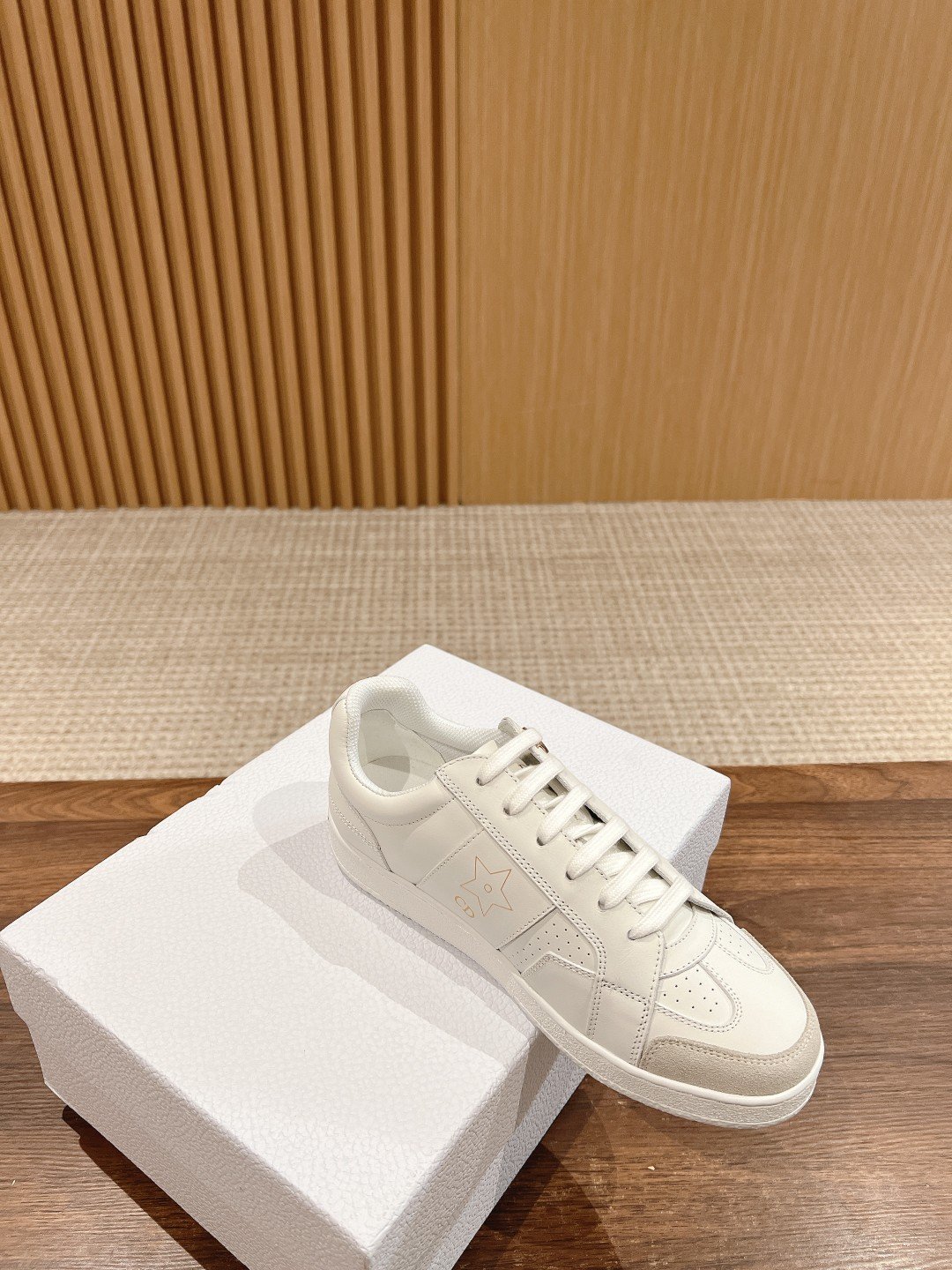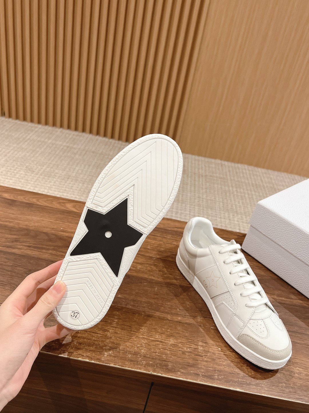 Home SHOES DIOR 𝐂𝐡𝐫𝐢𝐬𝐭𝐢𝐚𝐧𝐃 𝐢𝐨𝐫#Dio 2024 new This Dio Star sneaker continues the timeless silhouette, crafted in white cowhide leather, so it will be especially comfortable on the foot Oh Decorated with the same tone suede inlaid metal star decorated with lace eyelets to elevate the style of the grunge style light with the “Christian Dio” logo thin sole, suitable for all seasons, can be combined with a variety of casual styling, adding the finishing touch Classic and ultra-durable Upper cowhide leather splicing Original TPU outsole Size: 35-41 (40/41 customized non-returnable)