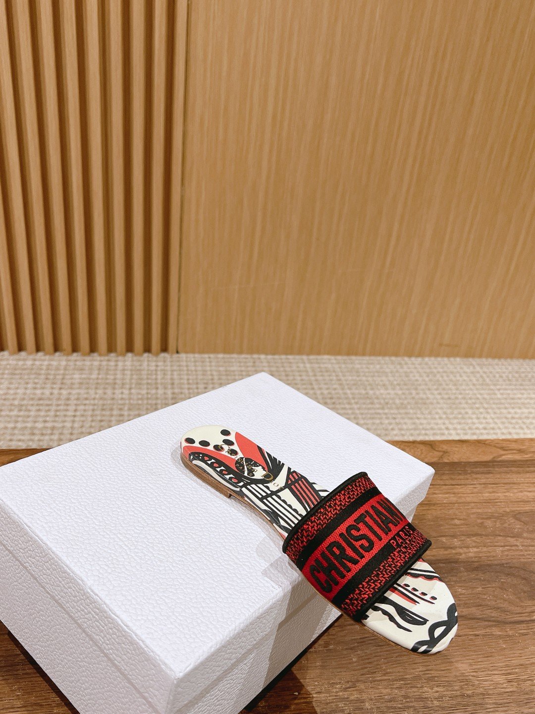 ๐ƒ๐ˆ๐Ž๐‘ Dior spring and summer new upgraded embroidery slippers, these slippers are really good to wear and look good, this year's color is really super beautiful, each color want to enter invincible white Leather outsole Size:35-39 ๐Ÿ‰‘ customized size 40-42