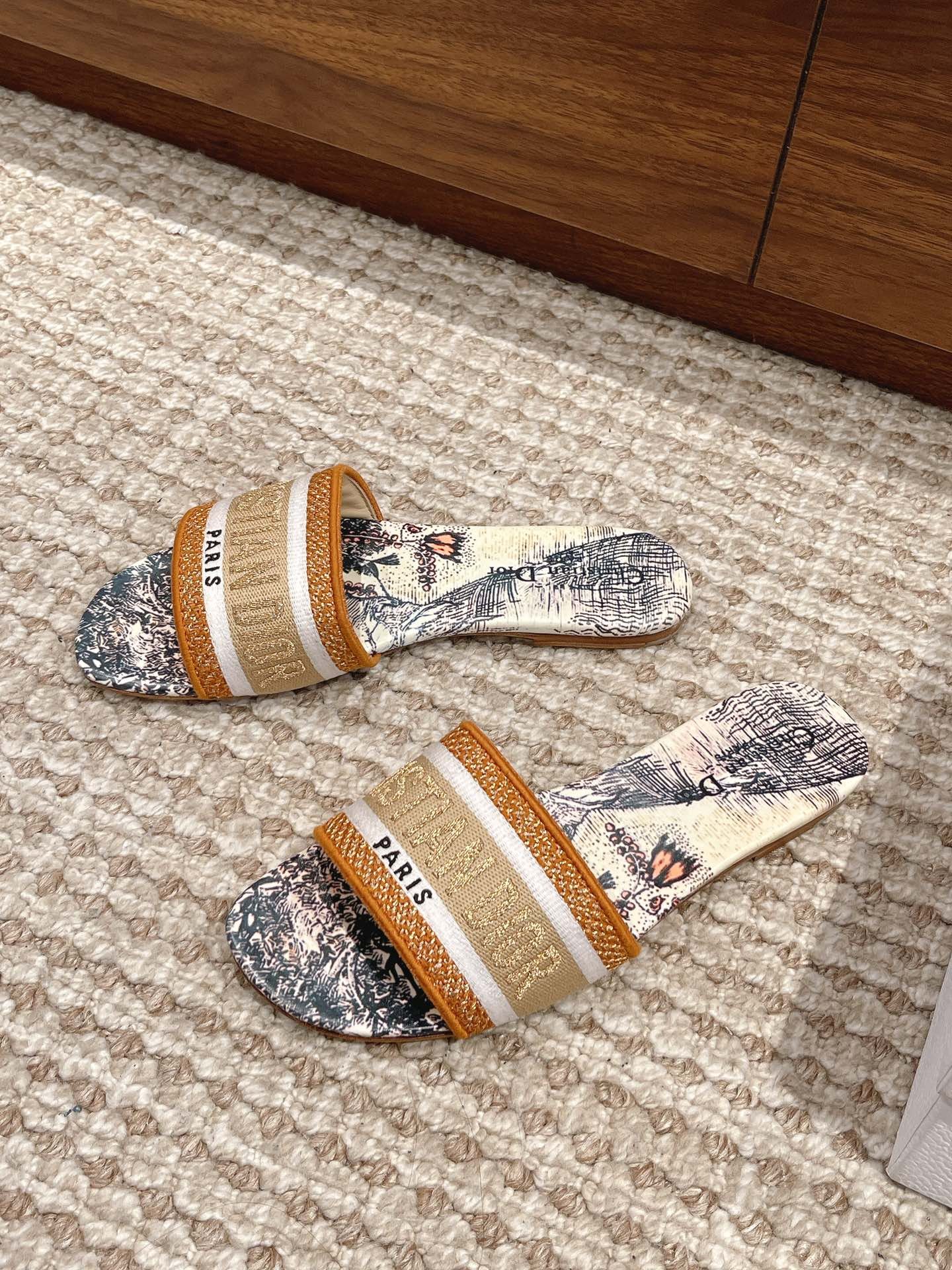 ๐ƒ๐ˆ๐Ž๐‘ Dior spring and summer new upgraded embroidery slippers, these slippers are really good to wear and look good, this year's color is really super beautiful, each color want to enter invincible white Leather outsole Size:35-39 ๐Ÿ‰‘ customized size 40-42