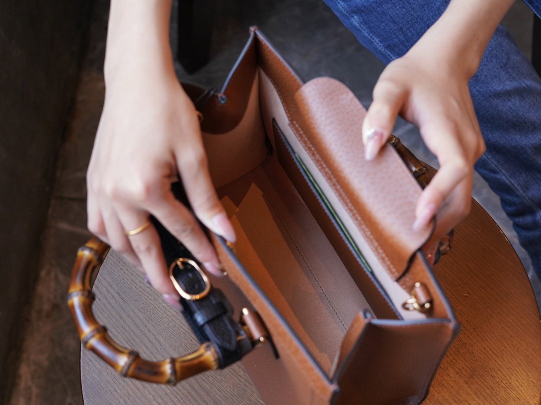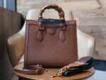 Diana The Bamboo handbag is a new take on the Bamboo Handle Tote, which was first introduced in 1991, presenting an evolutionary aesthetic. Crafted in brown leather, the functional strap that was originally used to hold the shape of the bamboo handles has been reinterpreted as an eye-catching buckle strap, a new interpretation that continues to influence the brand’s values.