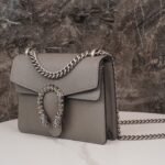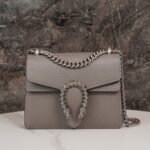Home BAGS GUCCI 𝐃𝐢𝐨𝐧𝐲𝐬𝐮𝐬 Collection Leather Mini Handbag Gray nnThis Dionysus Collection This shoulder bag from the Dionysus collection is styled in a chic earthy gray leather for the Early Spring 2020 collection. The buckle is embellished with the collection’s signature woven tiger head detail, inspired by Dionysus, one of the Greek gods who, in mythology, crossed the Tigris River on a tiger sent by Zeus. The sparkling crystal inlay gives the buckle a dazzling fashion style. nSize: 20*15.5*5cmn🔍: 4219700501
