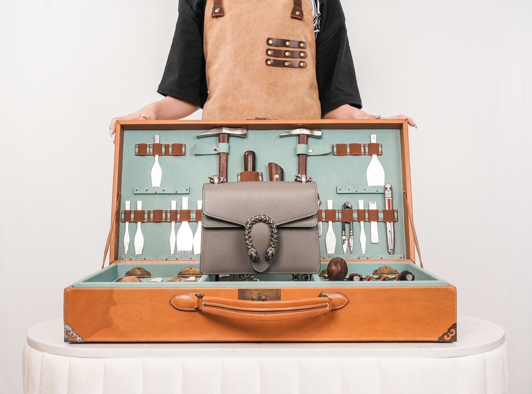 This Dionysus Collection This shoulder bag from the Dionysus collection is styled in a chic earthy gray leather for the Early Spring 2020 collection. The buckle is embellished with the collection’s signature woven tiger head detail, inspired by Dionysus, one of the Greek gods who, in mythology, crossed the Tigris River on a tiger sent by Zeus. The sparkling crystal inlay gives the buckle a dazzling fashion style.