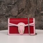 ๐ƒ๐ข๐จ๐ง๐ฒ๐ฌ๐ฎ๐ฌ Collection Small Shoulder Bag Red nn decorated with classic ๐†๐†๐†๐†๐†๐† pattern and red suede piping details. The bag is embellished with the brand’s signature tiger head clasp, inspired by Dionysus, the Greek god of wine, who in myth and legend rode a tiger sent by Zeus across the Tigris River, and sparkling crystals that give the clasp a luxurious touch. The sliding chain strap creates a variety of carrying styles, which can be freely converted between a shoulder bag and a handbag. nSize: 25*13.5*7cmn๐Ÿ”: 4996230011