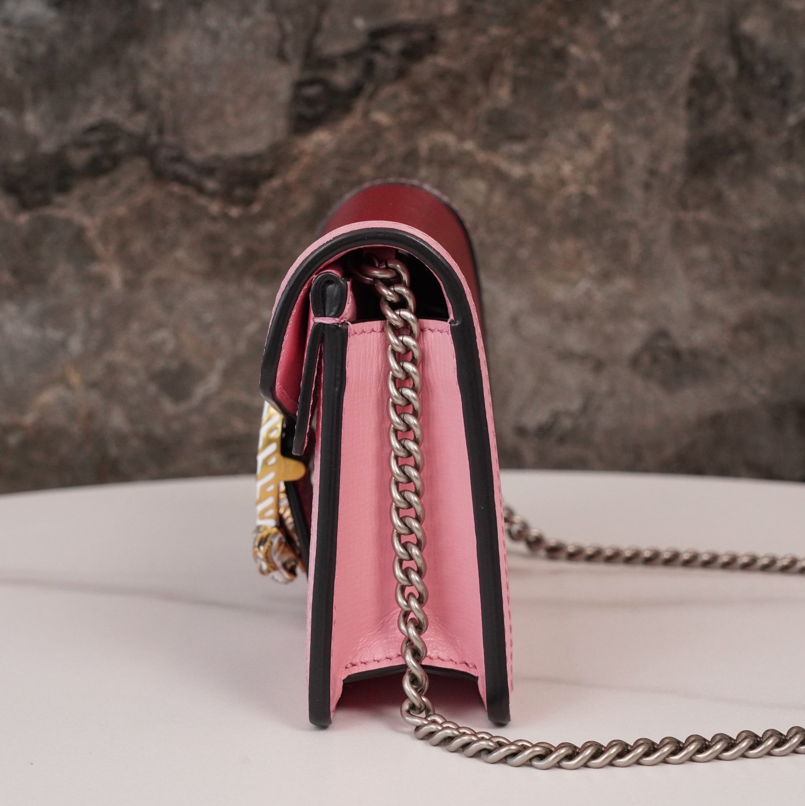 ๐ƒ๐ข๐จ๐ง๐ฒ๐ฌ๐ฎ๐ฌ collection of ultra-miniature handbags Red and Pink nn Classic styles revitalized by a vibrant and bright color palette. The classic red and pink color scheme has been reinterpreted in a bright and vibrant color palette, reminiscent of the beauty of precious stones. The Dionysus bag is crafted in new ruby red leather with pale pink piping. The collection’s iconic tiger head closure incorporates glittering enamel details to emphasize the exceptional design quality. nSize: 16.5*10*4cmn๐Ÿ”: 4764320860