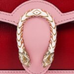 Classic styles revitalized by a vibrant and bright color palette. The classic red and pink color scheme has been reinterpreted in a bright and vibrant color palette, reminiscent of the beauty of precious stones. The Dionysus bag is crafted in new ruby red leather with pale pink piping. The collection’s iconic tiger head closure incorporates glittering enamel details to emphasize the exceptional design quality.