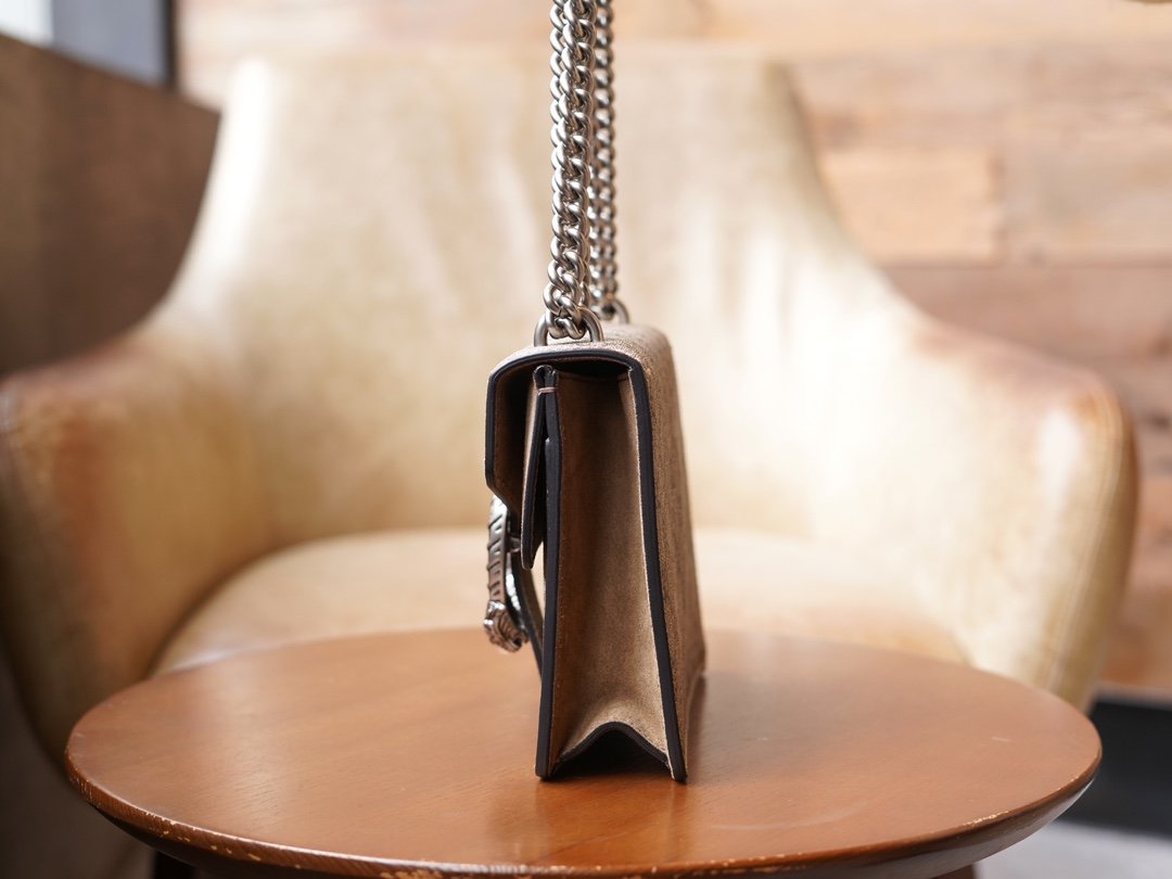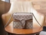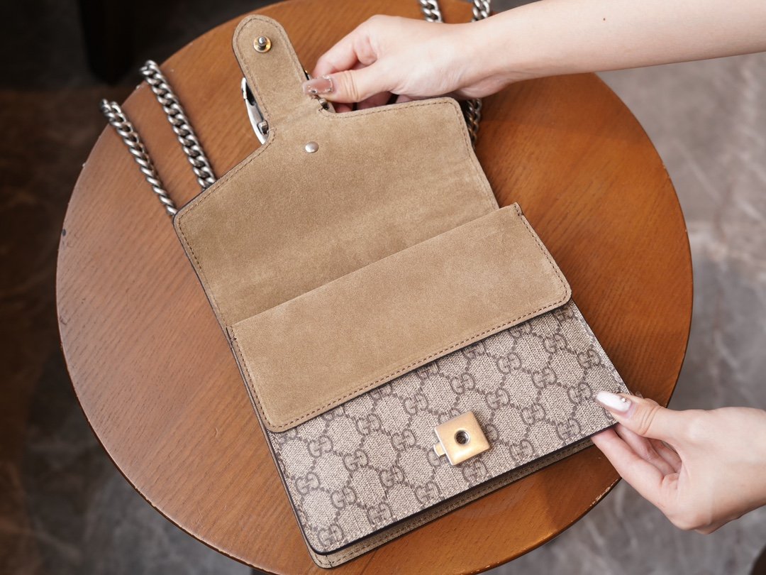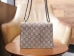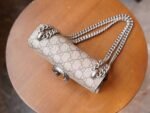 𝐃𝐢𝐨𝐧𝐲𝐬𝐮𝐬 Collection Small Shoulder Bag Black nn decorated with classic 𝐆𝐆𝐆𝐆𝐆𝐆 pattern and black suede piping details. The bag is embellished with the brand’s signature tiger head clasp, inspired by Dionysus, the Greek god of wine, who in myth and legend crossed the Tigris River on a tiger sent by Zeus, and sparkling crystals that give the clasp a luxurious touch. The sliding chain strap creates a variety of carrying styles, which can be freely converted between a shoulder bag and a handbag. nSize: 25*13.5*7cmn🔍: 4996230011