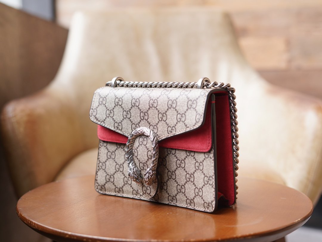 Home BAGS GUCCI ๐ƒ๐ข๐จ๐ง๐ฒ๐ฌ๐ฎ๐ฌ Collection Wine God Canvas Shoulder Bag Red nn Quite a structured miniature bag. With woven double tiger head clasp. The sliding chain bag comes with a variety of carrying styles and can be freely converted between shoulder and hand carry. nSize: 20*15.5*5cmnModel No.: 421970