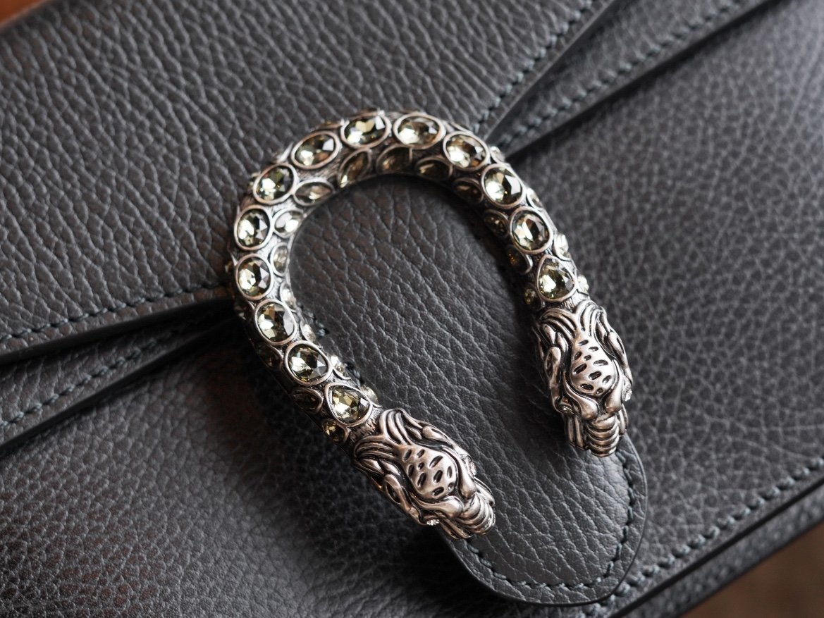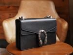 Dionysus Series Shoulder A backpack with the now iconic tiger’s head clasp – a detail inspired by the Greek god Dionysus (Dionysus collection), who in mythology rode across the Tigris on a tiger sent by Zeus. The clasp is also decorated with black Swarovski crystals. The sliding chain bag comes with a variety of carrying styles, allowing it to transition between shoulder and hand carry. Finely crafted in sturdy and durable woven leather.
