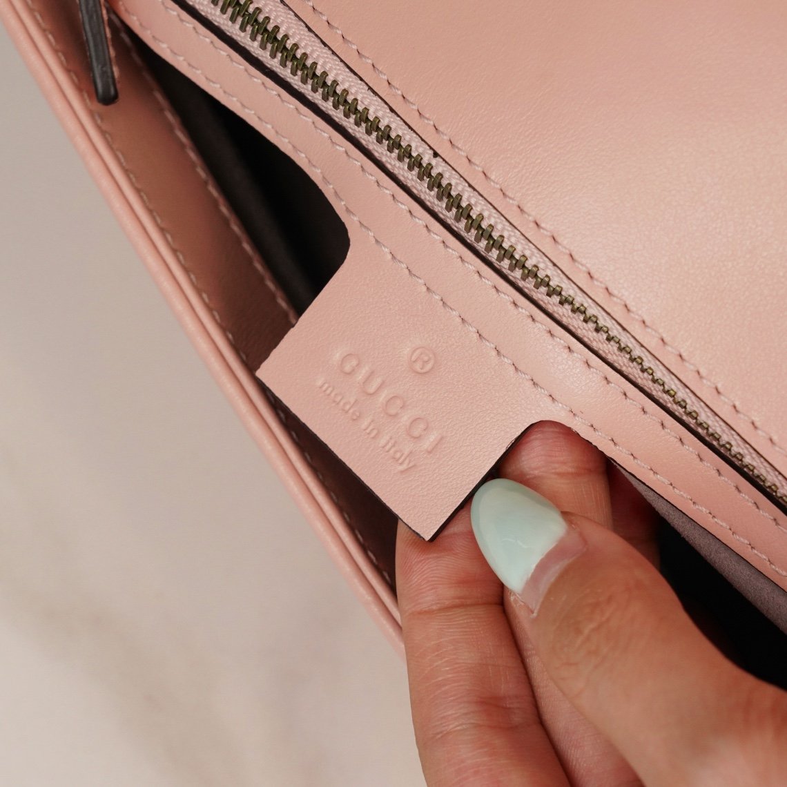 Home BAGS GUCCI ๐†๐†๐Œ๐š๐ซ๐ฆ๐จ๐ง๐ญ Cherry Pink Oversized nn Structural With its soft shape and oversized flap closure, the recognizable double ๐† accessory gives the bag even more charm ใ€ฐn Sliding chain shoulder strap allows for a variety of carrying styles, allowing it to be carried on the shoulder or in a handheld position โn Quilted ๐•-type leather with a heart motif at the back n nSimple shape, large capacity beyond imagination, and classic but not outdated design, the future of the chic degree of full completion depends on it! nSize: 26*15*7cmn๐Ÿ”: 4434970890