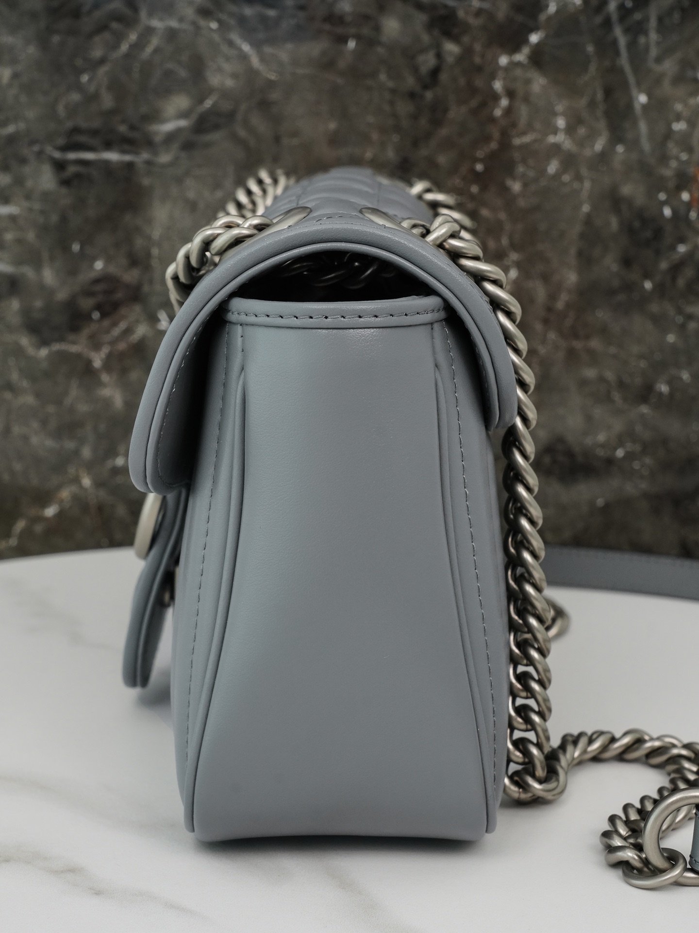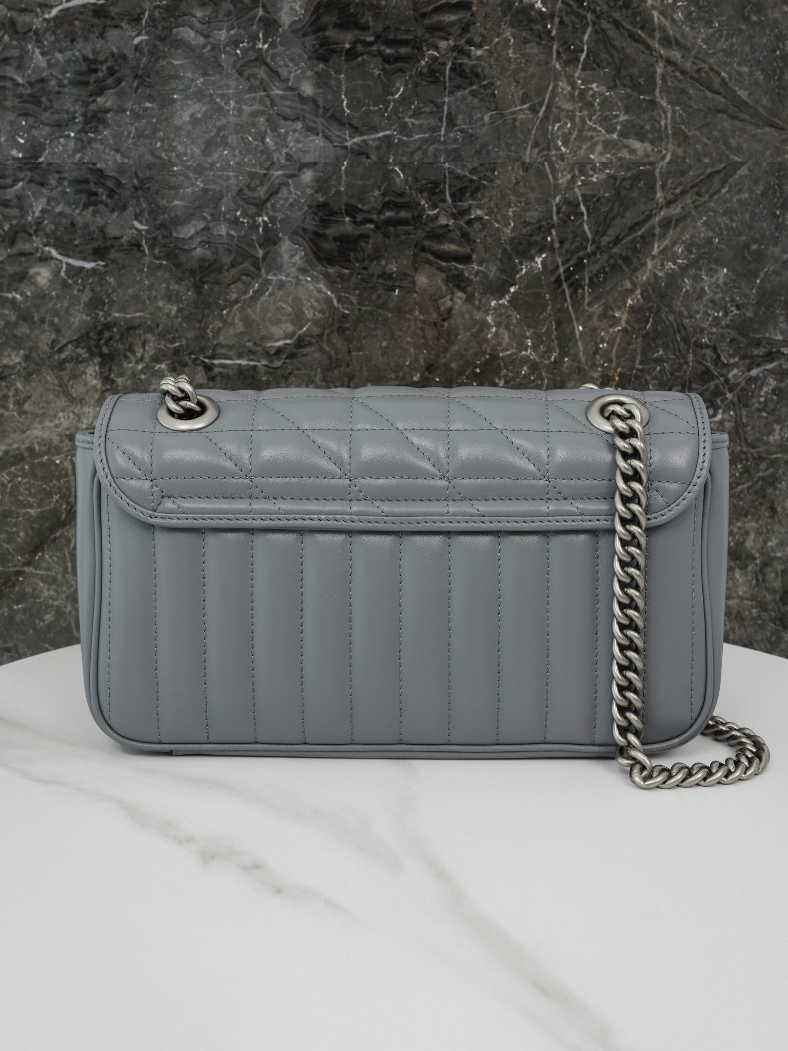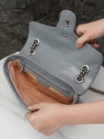 The Aria – Fashion Aria collection continues to boldly explore the brand’s classic symbolic elements. As part of the Favored Handbags Selection, the GG Marmont collection is revered for its signature quilted leather and double G monogrammed interwoven accessories. On this small shoulder bag, the classic material is incorporated with vertical and twill patterns to create a distinctive geometric style design.