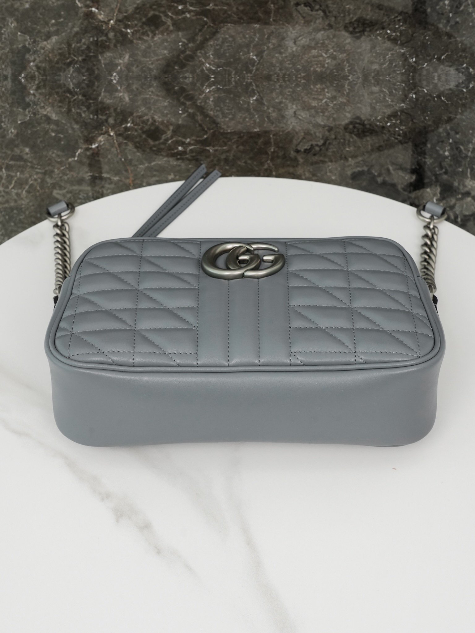 ๐†๐†๐Œ๐š๐ซ๐ฆ๐จ๐ง๐ญ Geometry Collection Camera Bag Dark Gray Small nnA part of the Favored Handbags Selection, the GG Marmont collection is revered for its signature double G monogram interwoven hardware and quilted leather. For the “Aria – Fashion Aria” collection, the GG Marmont collection revitalizes the classic materials with a geometric style, combined with double G styling accessories in antique silver tones, to present this stunning dark grey small shoulder bag. nSize: 24*13*7cmn๐Ÿ”: 4476320590