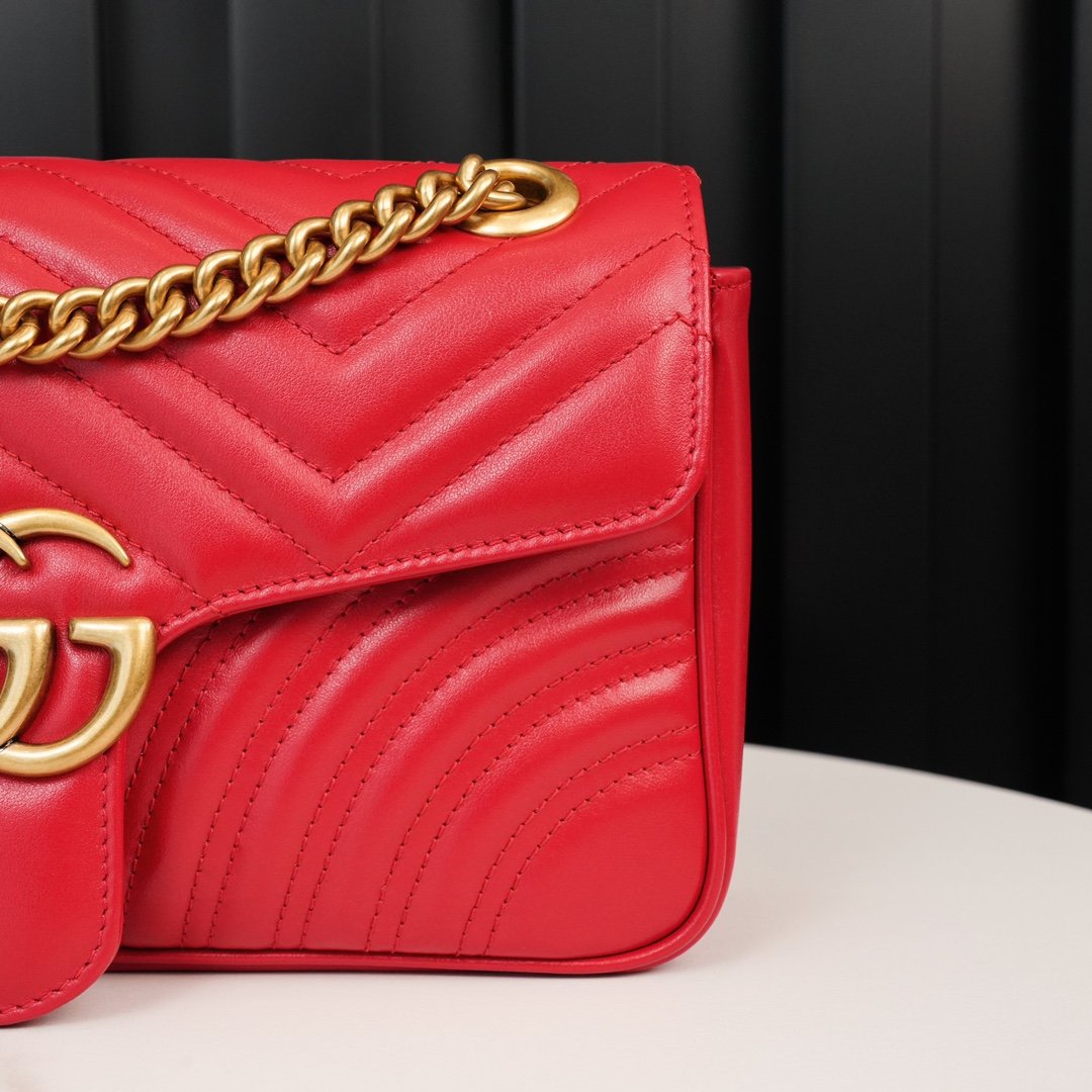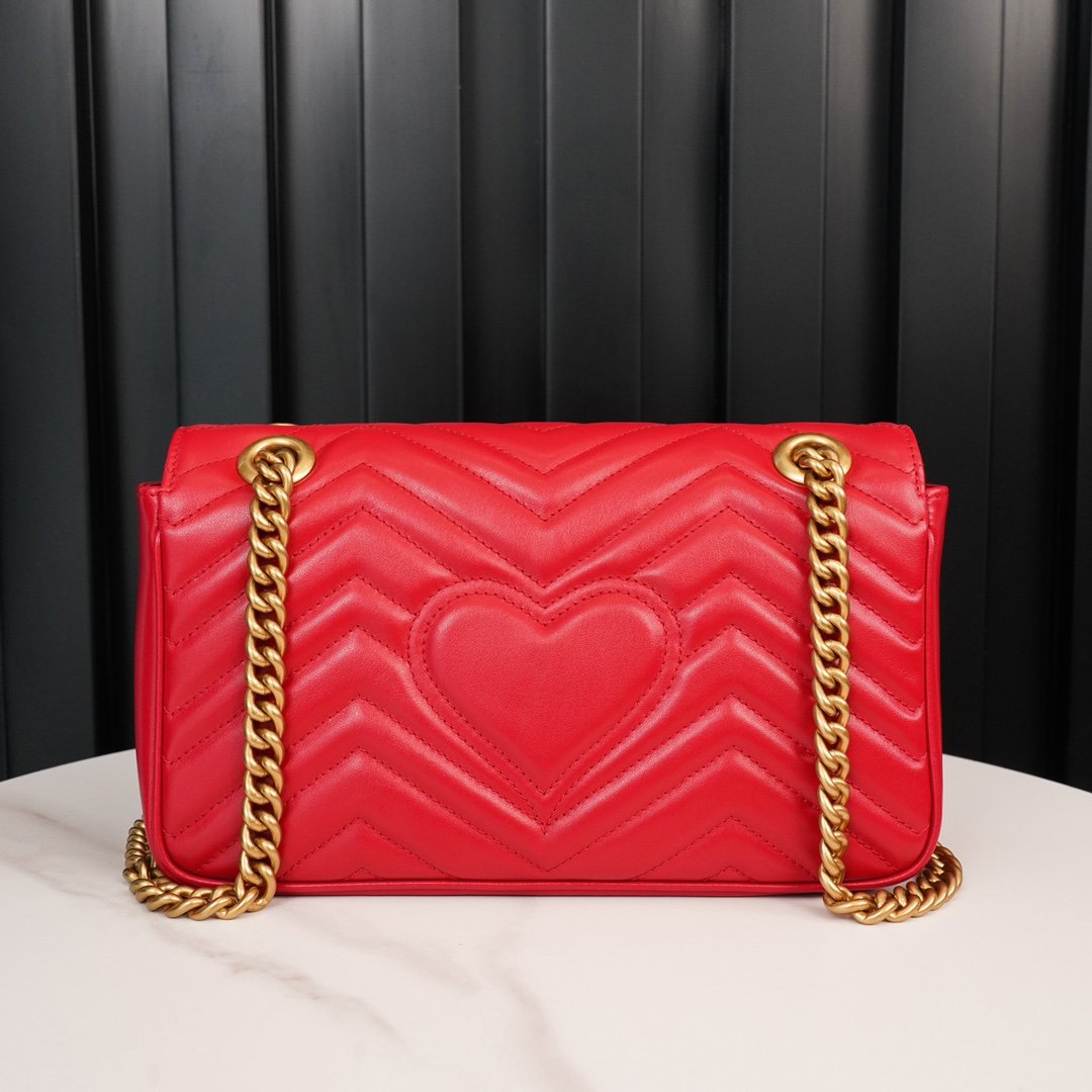 𝐆𝐆𝐌𝐚𝐫𝐦𝐨𝐧𝐭 Large red Large nn quite structured The soft shape and oversized flap closure, recognizable double 𝐆 accessories give the bag more charm 〰n the sliding chain shoulder strap has a variety of ways to carry, can be freely converted between shoulder and hand ❏n quilted 𝐕 type leather, the back of the decorated with a heart pattern n Simple shape, super large capacity, and classic but not outdated design, the future of the chic degree of full completion depends on it! nSize: 26*15*7cmn🔍: 4434970890