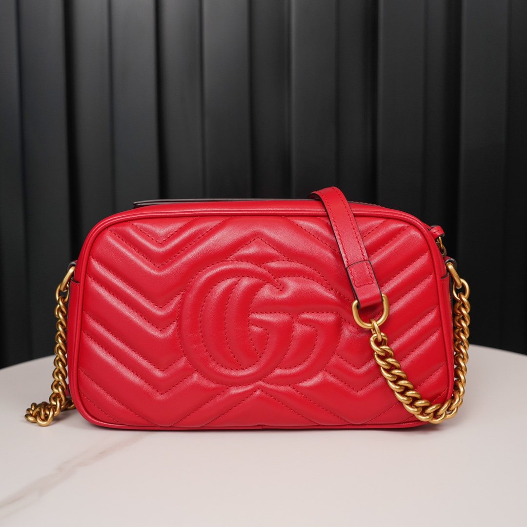 Quite Structured soft shape with top zipper closure with double G metal hardware. Leather shoulder pads with chain shoulder strap detailing for greatly increased wearing comfort. Wave pattern quilted leather with double ๐ logo on the back, the overall shape is soft but not too stiff