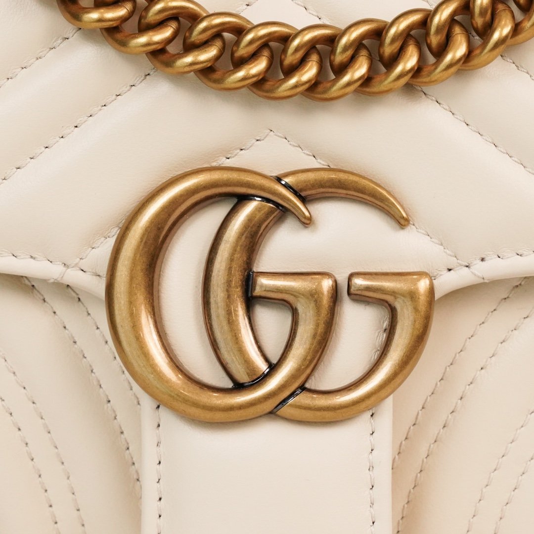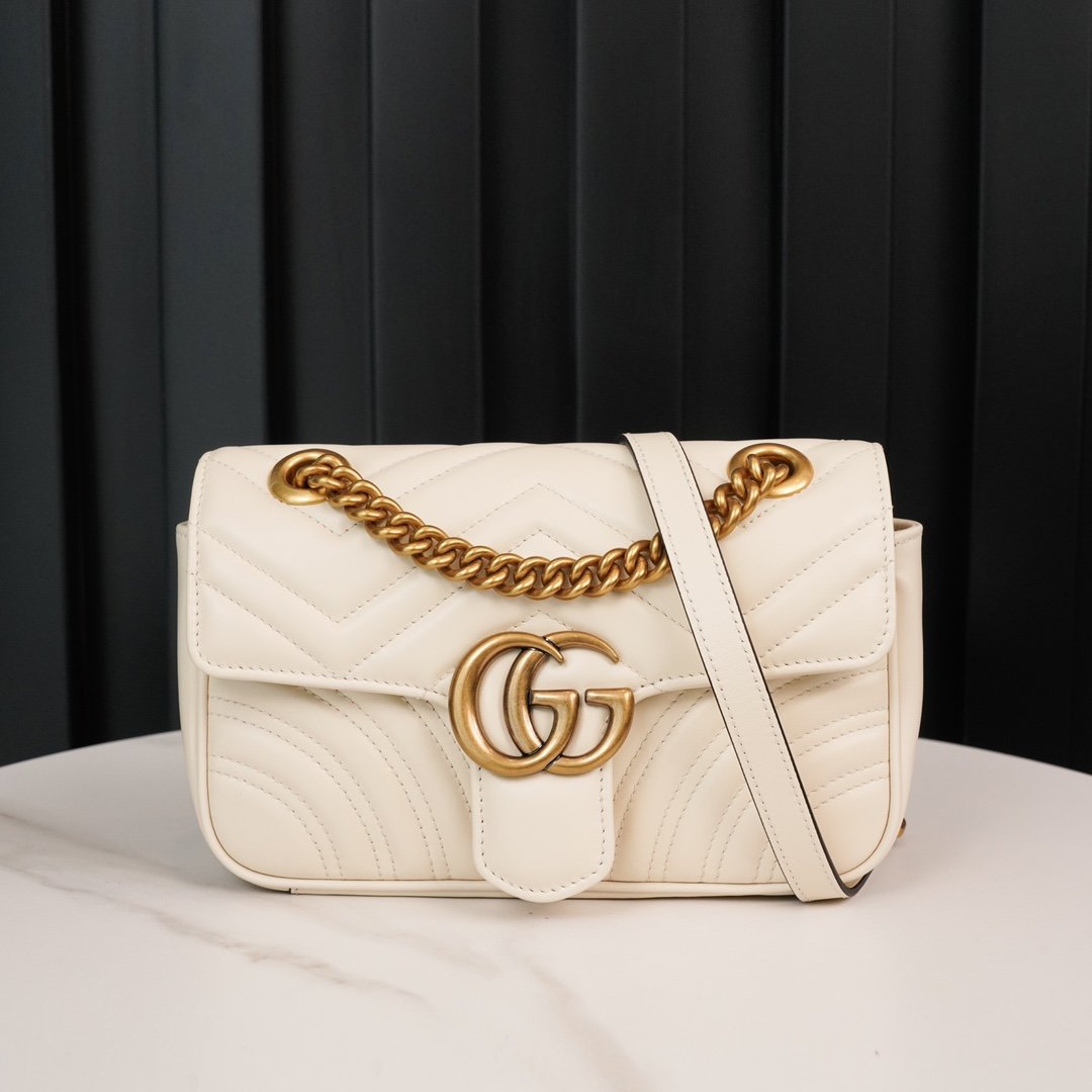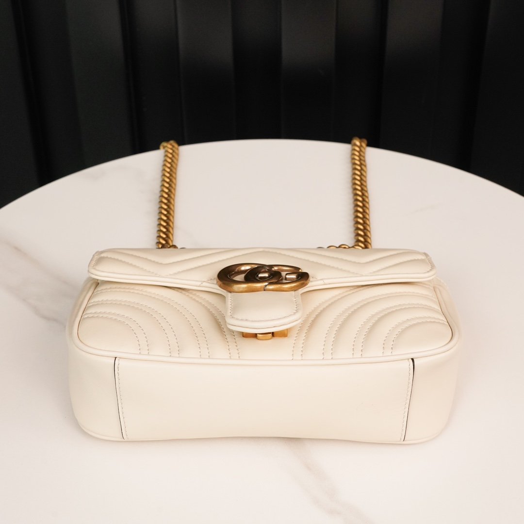 Home BAGS GUCCI 𝐆𝐆𝐌𝐚𝐫𝐦𝐨𝐧𝐭 White Small nn Structural The soft shape and oversized flap closure, recognizable double 𝐆 accessories give the bag more charm 〰n sliding chain shoulder strap has a variety of ways to carry, can be freely converted between shoulder and hand ❏n quilted 𝐕 type leather, the back of the decorated with a heart pattern n Simple shape, large capacity beyond imagination, and classic but not outdated design, the future of the chic degree of full completion depends on it! nSize: 22*13*6cmn🔍: 4467440880